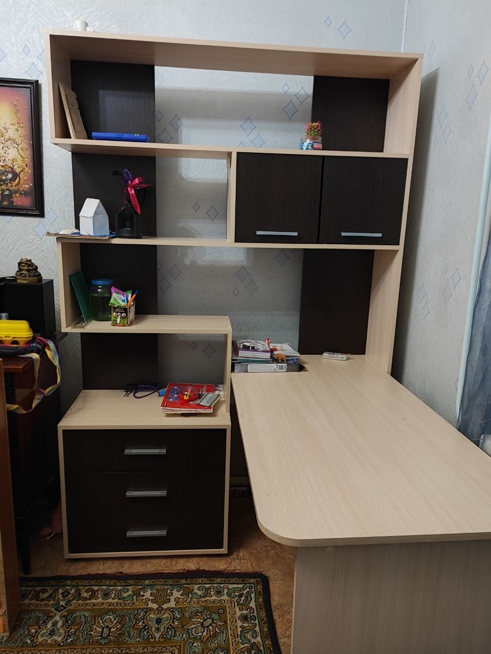 Продам угловой стол для школьника. Очень вместительный (глубокие ящики, много полочек, широкая столешница) . Стол универсальный (становится, как в левый, так и в правый угол комнаты). В эксплуатации был всего 1 год, продаем в связи с переездом. 17 тыс.руб. Тел.: +79493639523