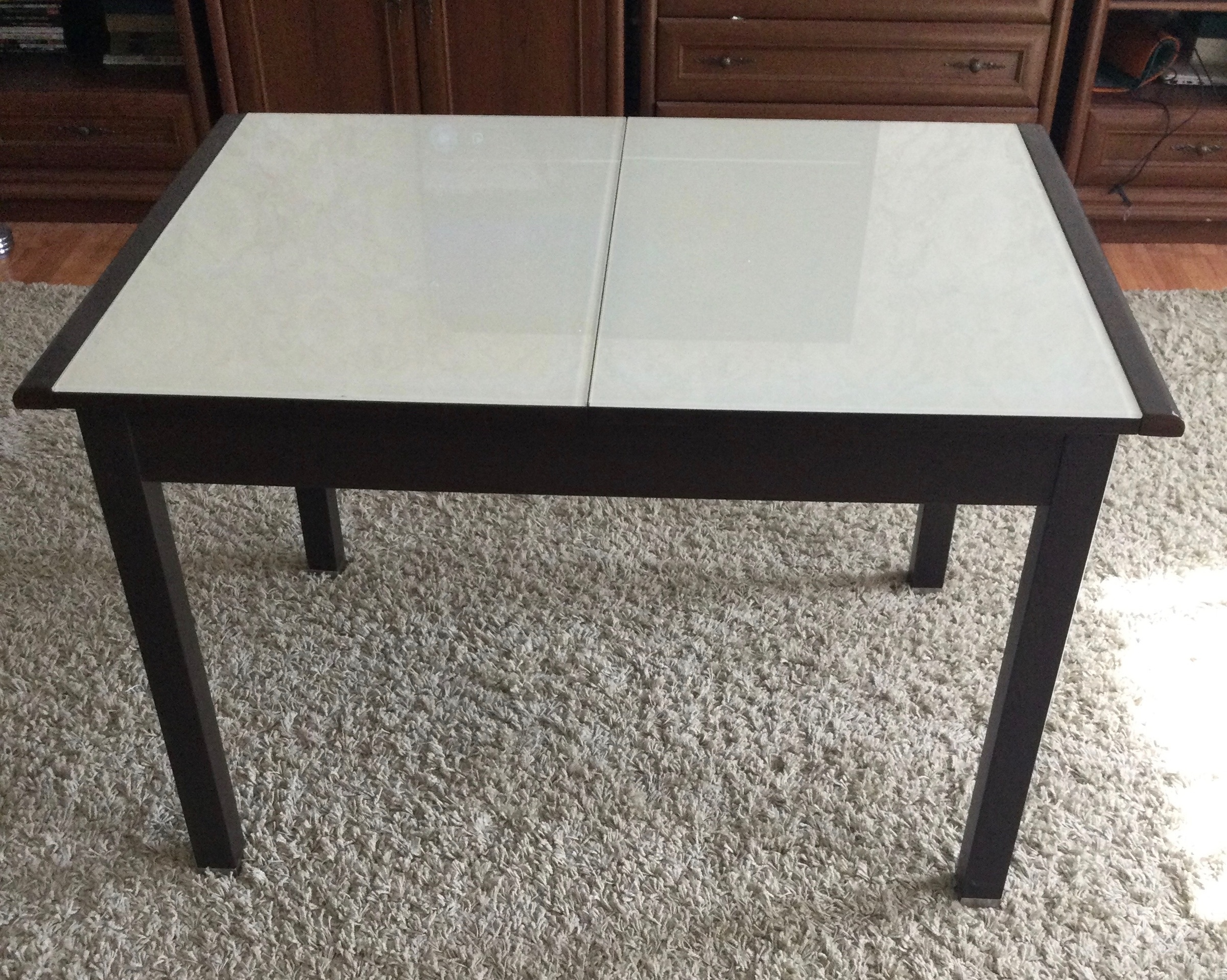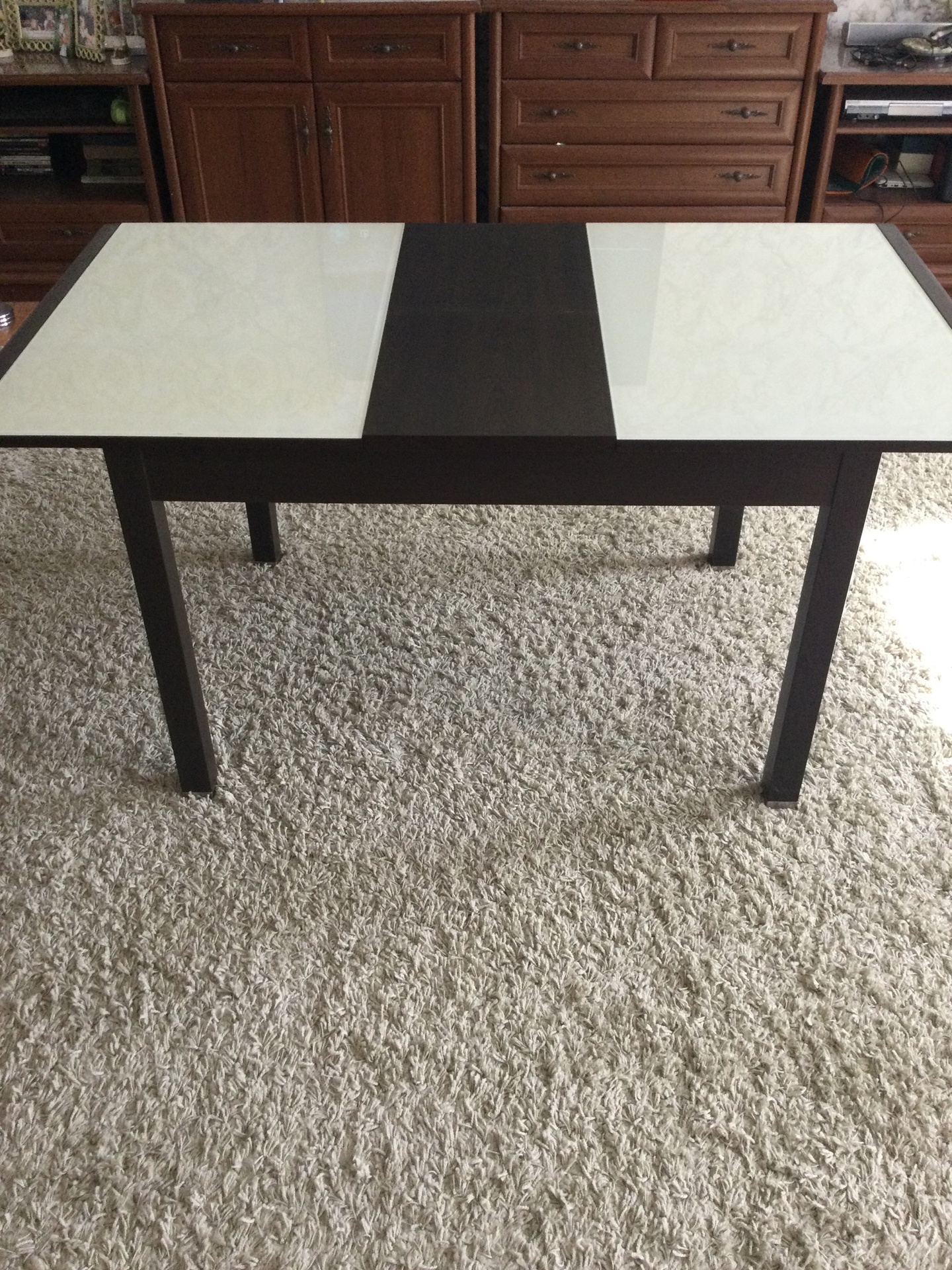 Стол дерево + закаленное стекло , размер 120/85, в разобранном виде 155/85 , стол в идеальном состоянии , качественный и красивый цена 15000 тел +79494644762