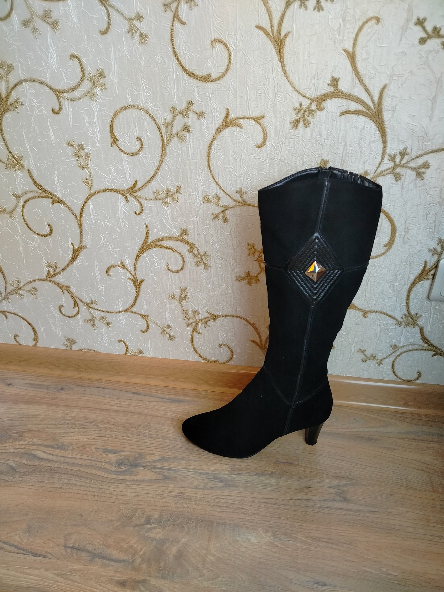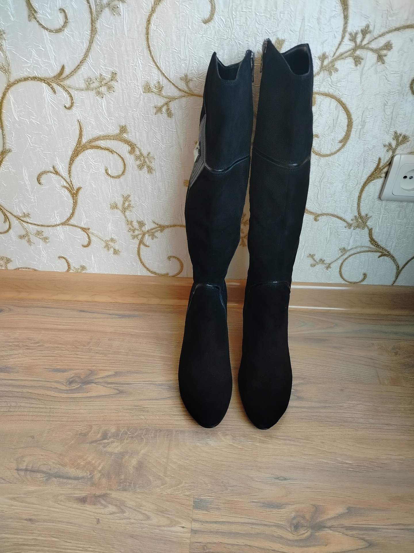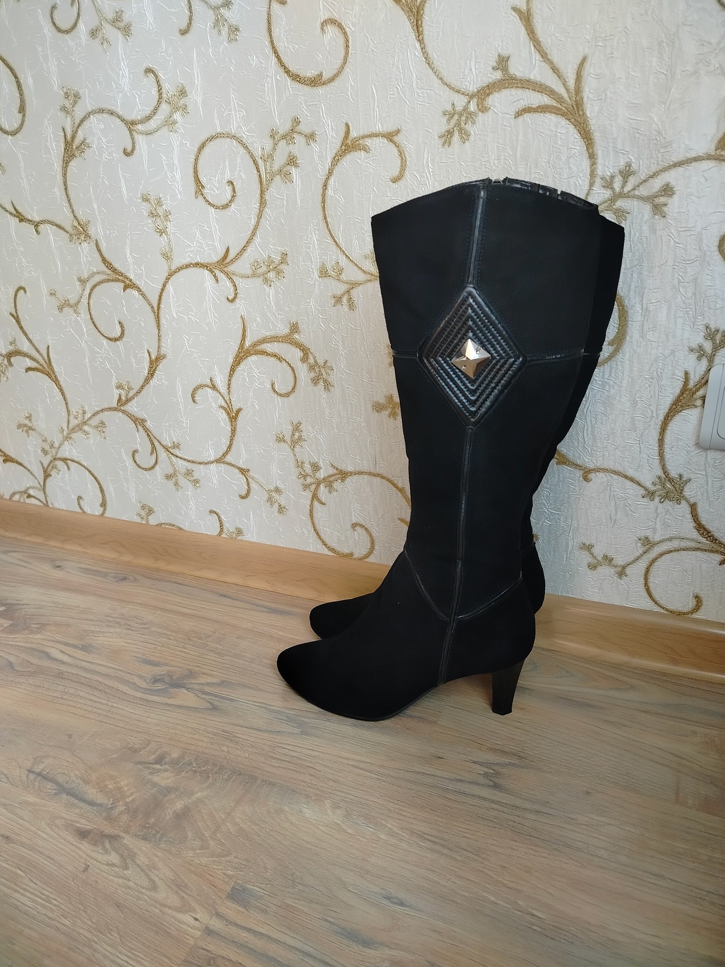 Горловка. Продам женские замшевые сапоги размер 40 по стельке 26 см., демисезонные, натуральный замш. Одеты пару раз. Стоимость 5000 рублей. т.79495324870