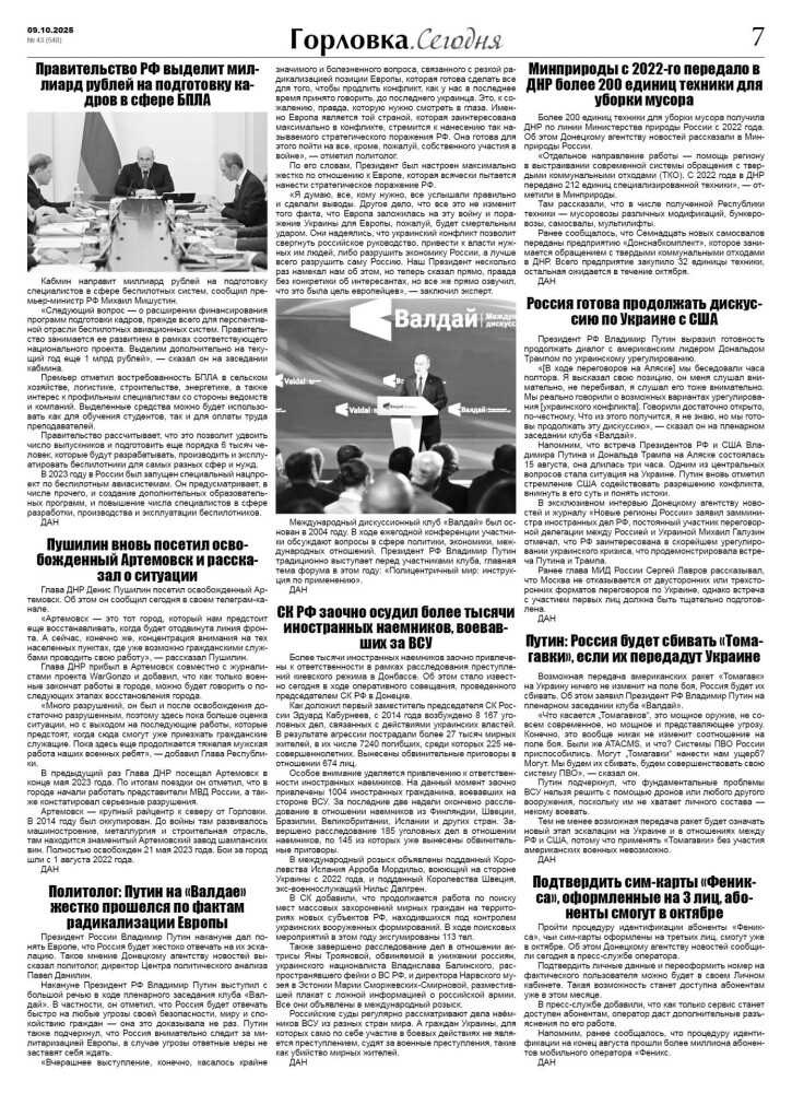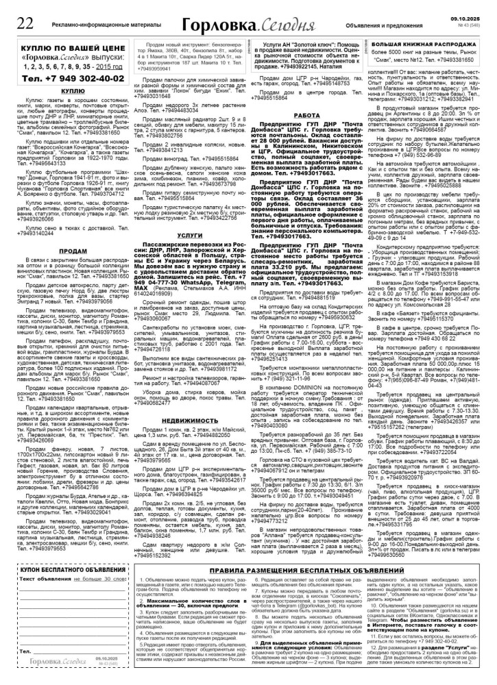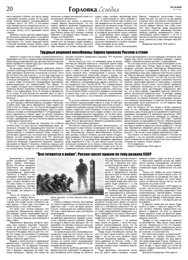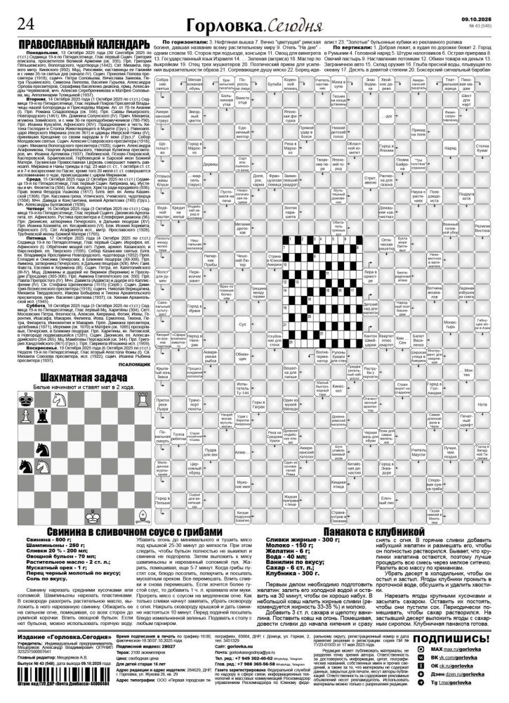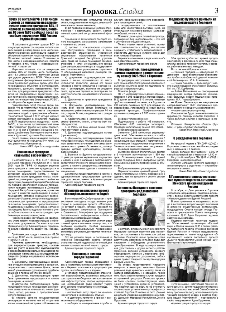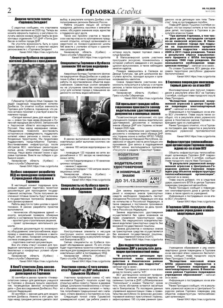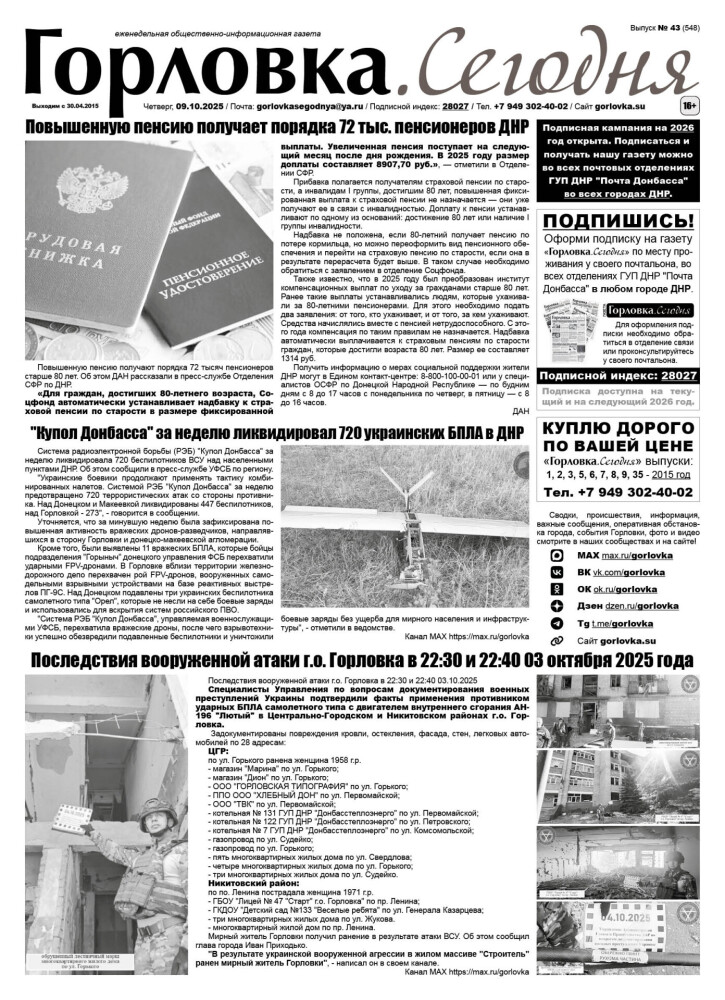 🗞 09 октября 2025 года, вышел новый выпуск общественно-информационной газеты «Горловка.Сегодня» 🇷🇺 №43 (548). 24 полосы, тираж 2100 экз., газета выходит каждый четверг. 📰 MAX https://max.ru/gorlovka