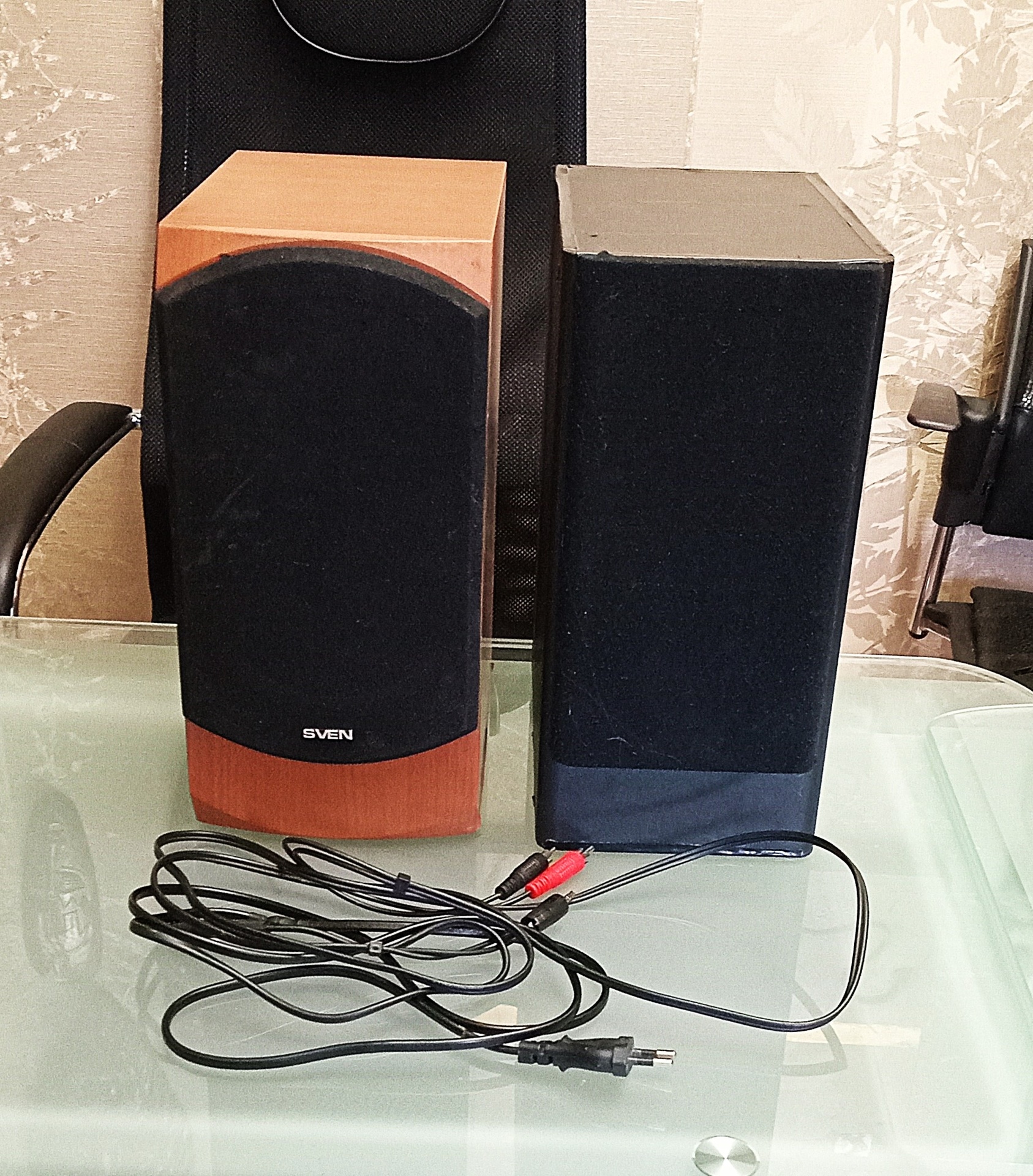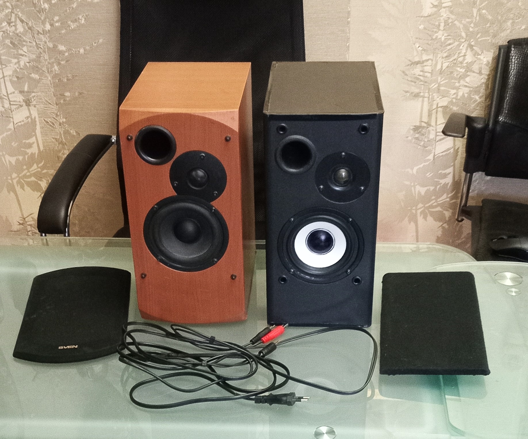 3.Акустика 2.0 SVEN BF-11 [2 х 18 Вт, материал дерево, цвет тёмный дуб] вторая черная.