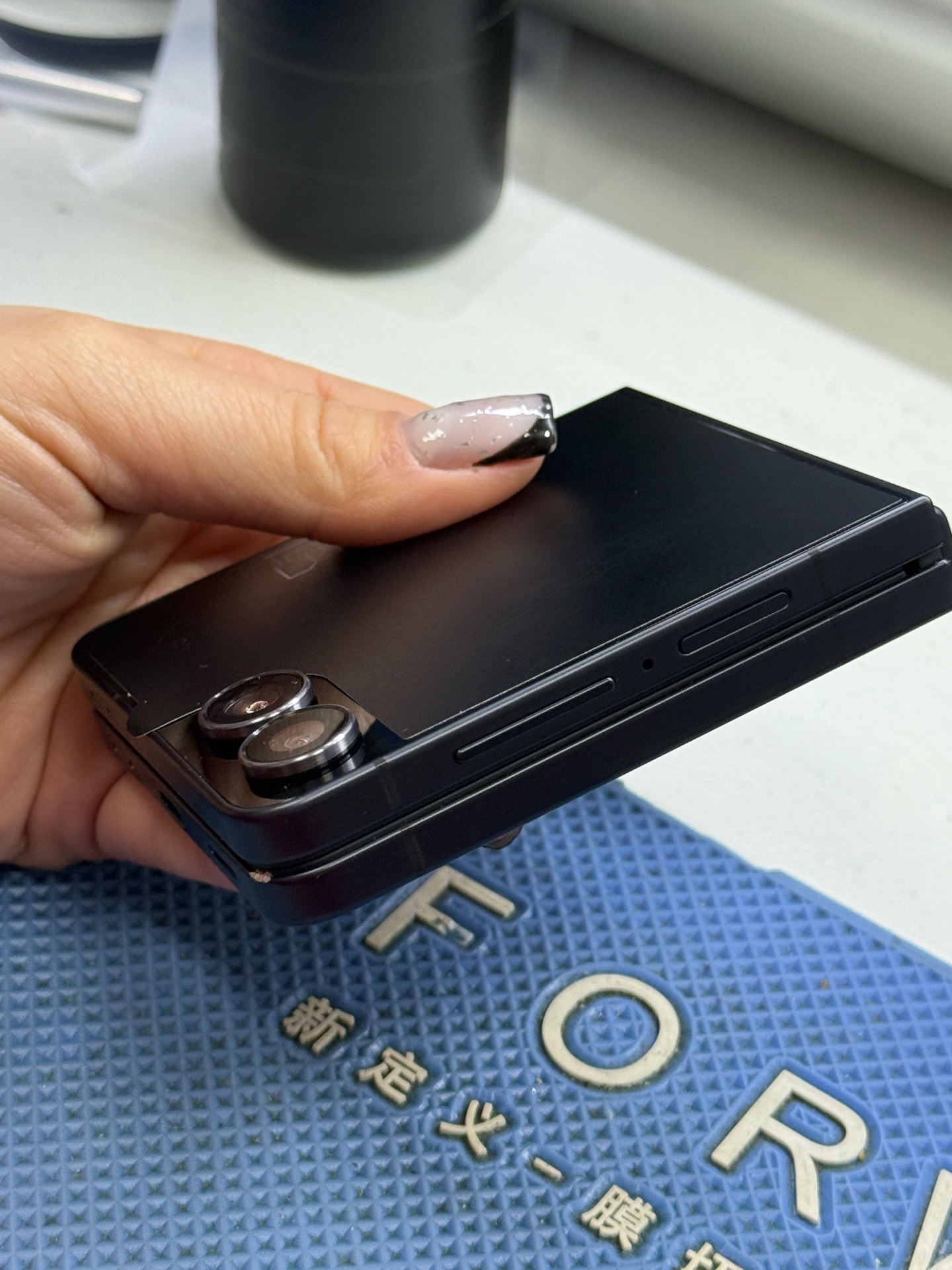 * Внешний экран. Диагональ — 4,1 дюйма, оснащён максимально тонкой рамкой из армированного алюминия и прочным стеклом Corning Gorilla Glass Victus 2.