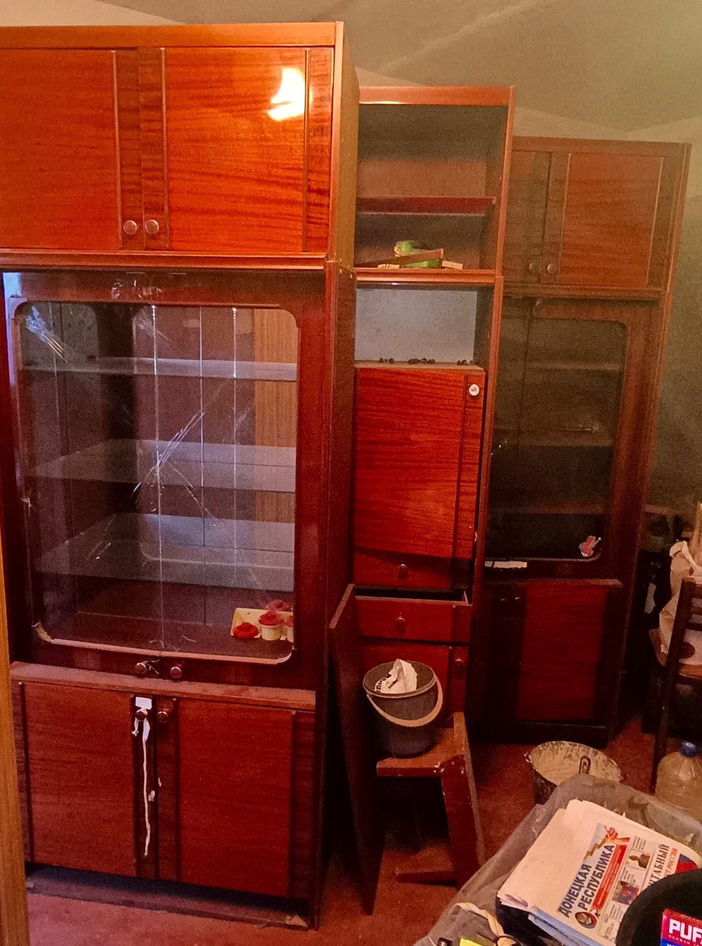 Отдам бесплатно 4 шкафа и тумбу в комплекте. Все целое, исправное, подготовлено к вывозу. Ориентир мкрн. Мирный. Самовывоз.