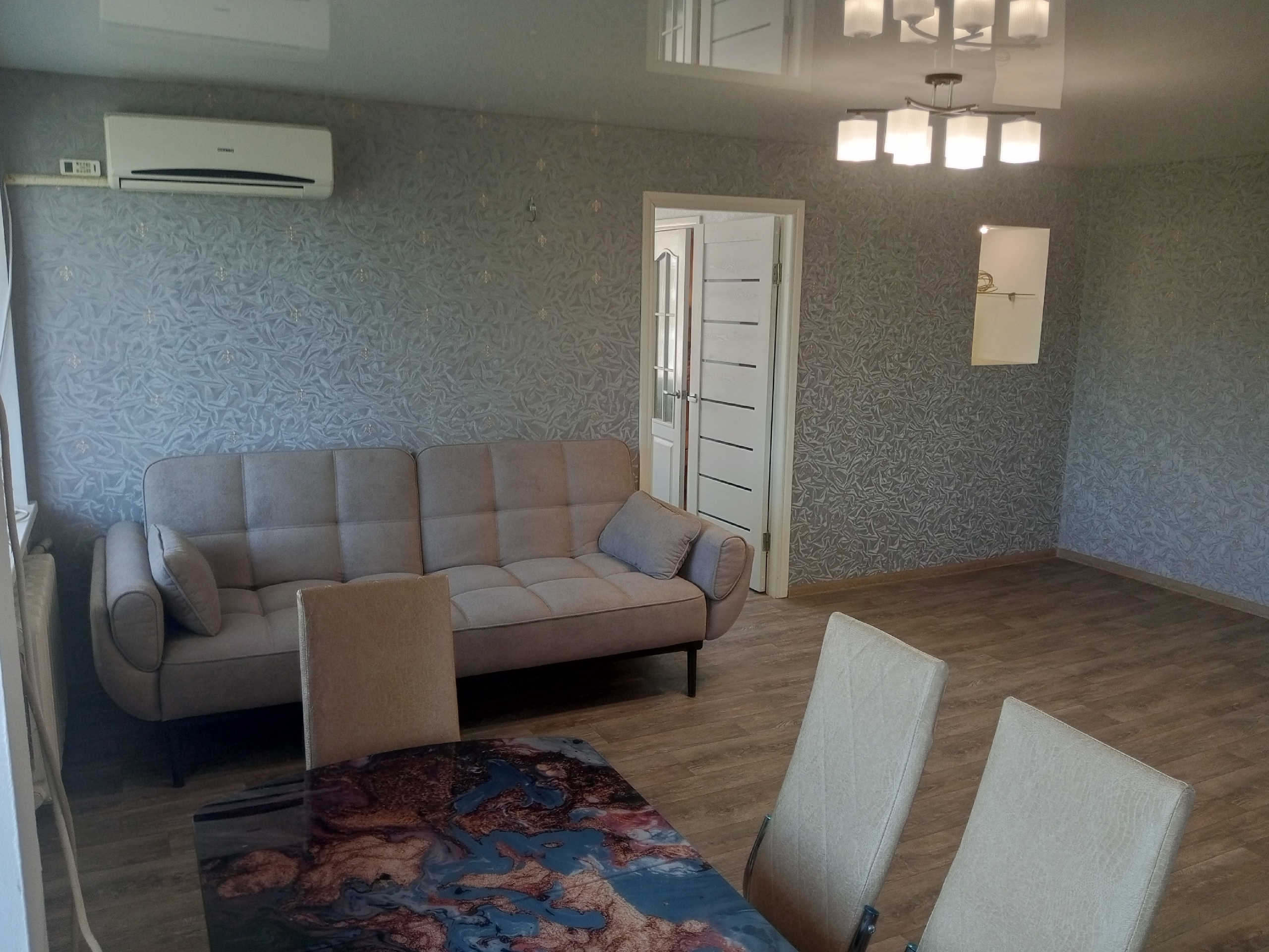 Квартира находится в центре города, выполнен качественный капитальный ремонт, после ремонта никто не жил, кухня-студия, окна и балкон пластик, колонка, кондиционер, санузел совмещен, есть гардеробная, отличное расположение, рядом вся инфраструктура города, остановки, документы с регистрацией в