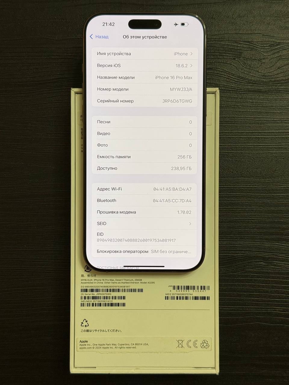 Продам iPhone 16 Pro Max 256gb Песчаный Титан