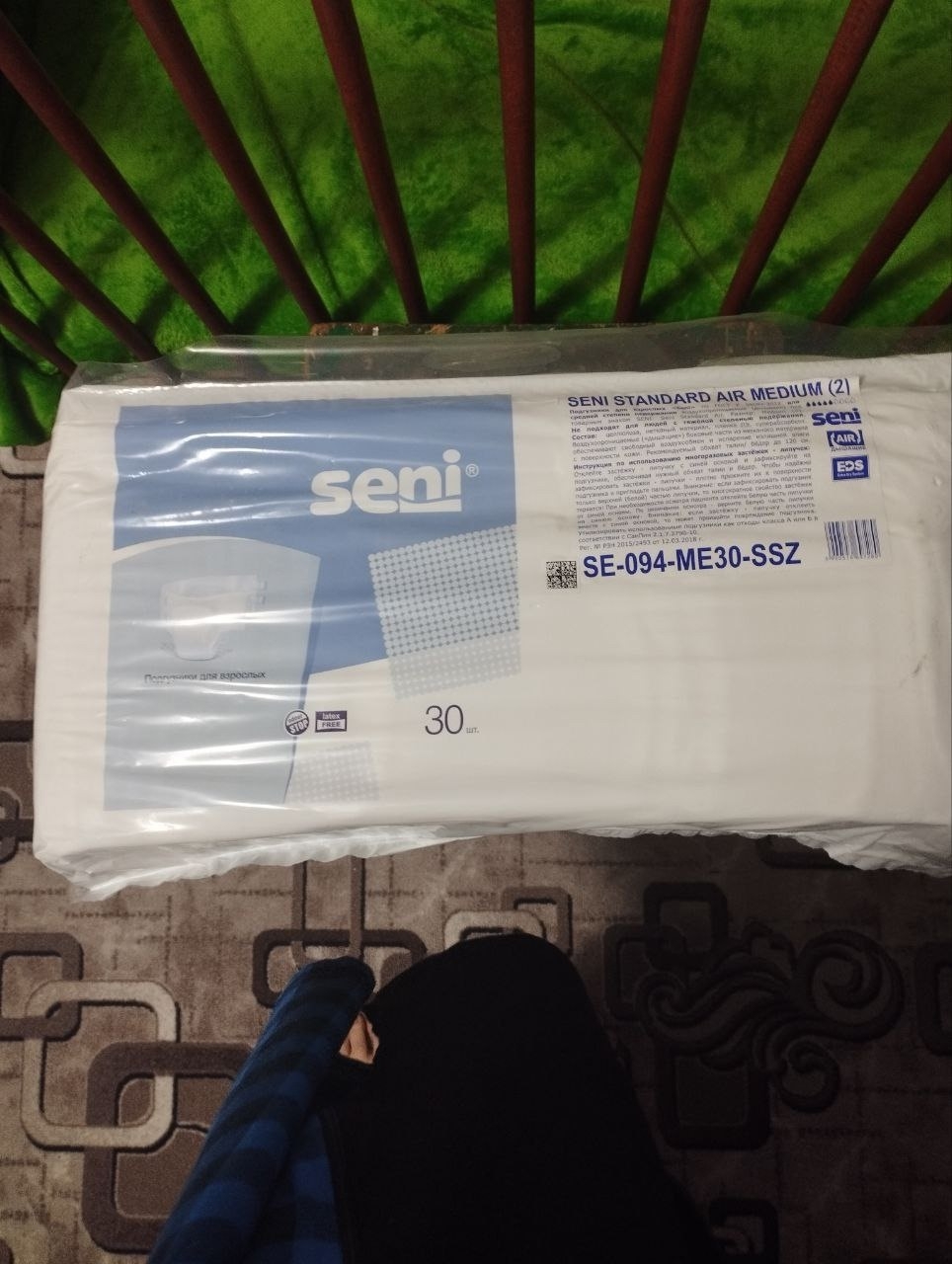 Взрослые памперсы, одна пачка целая, вторая раскрытая .