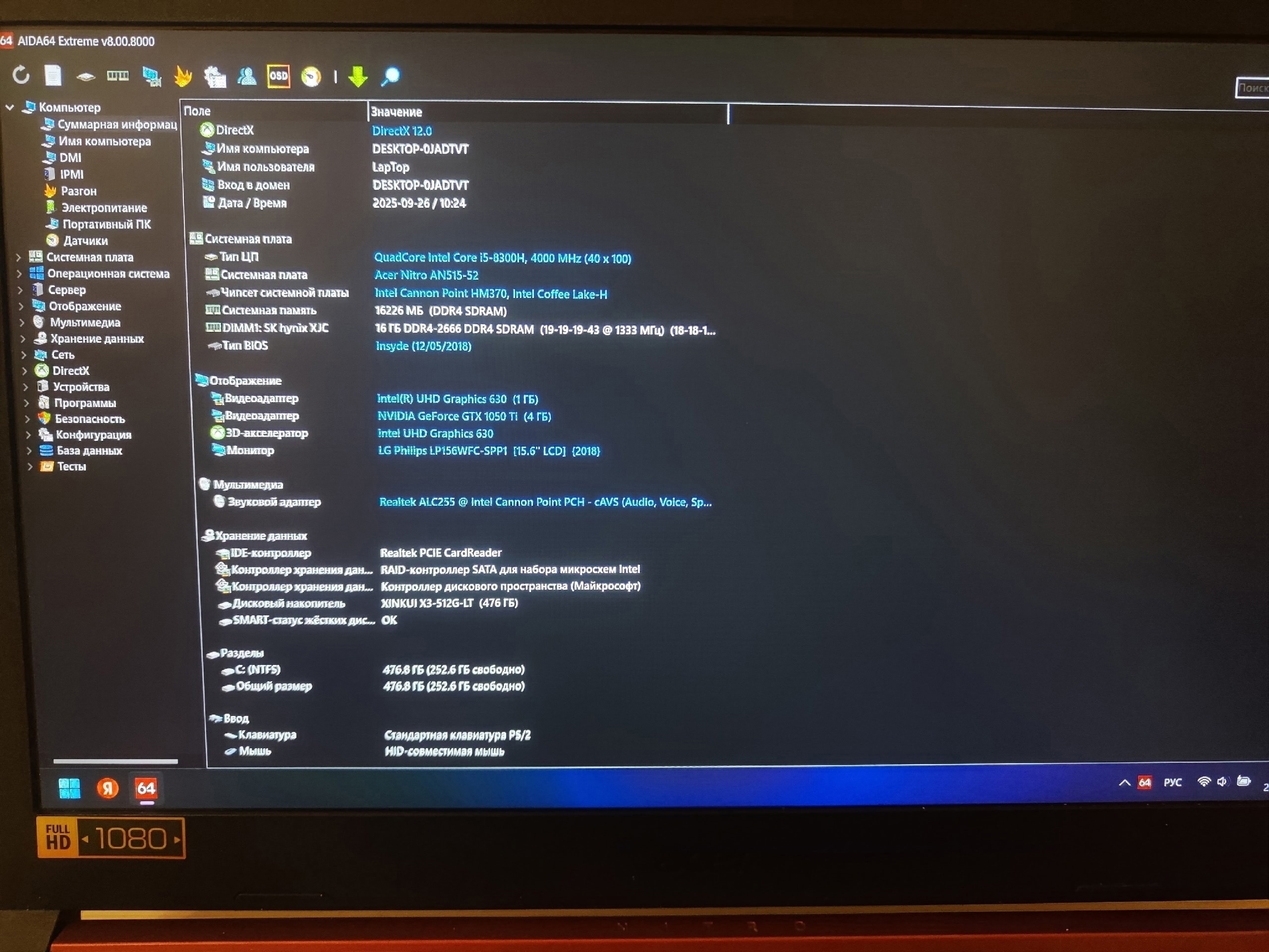 Экран 15.6″ с Full HD разрешением (1920×1080).