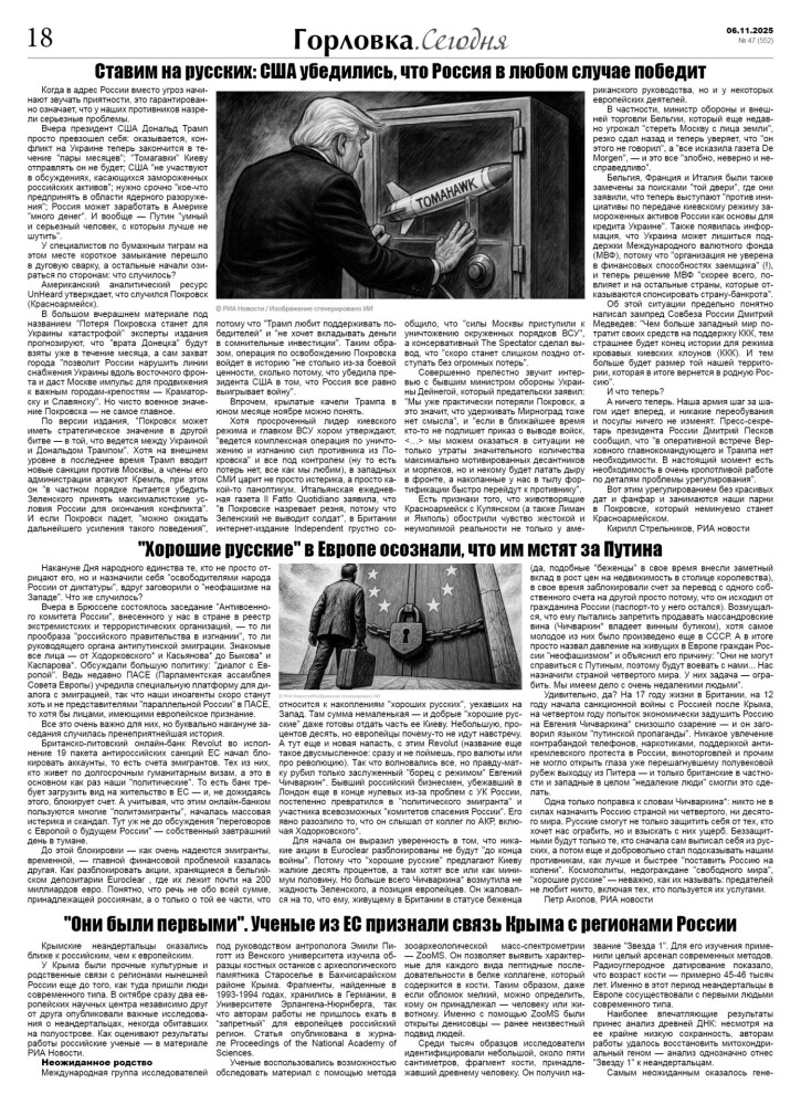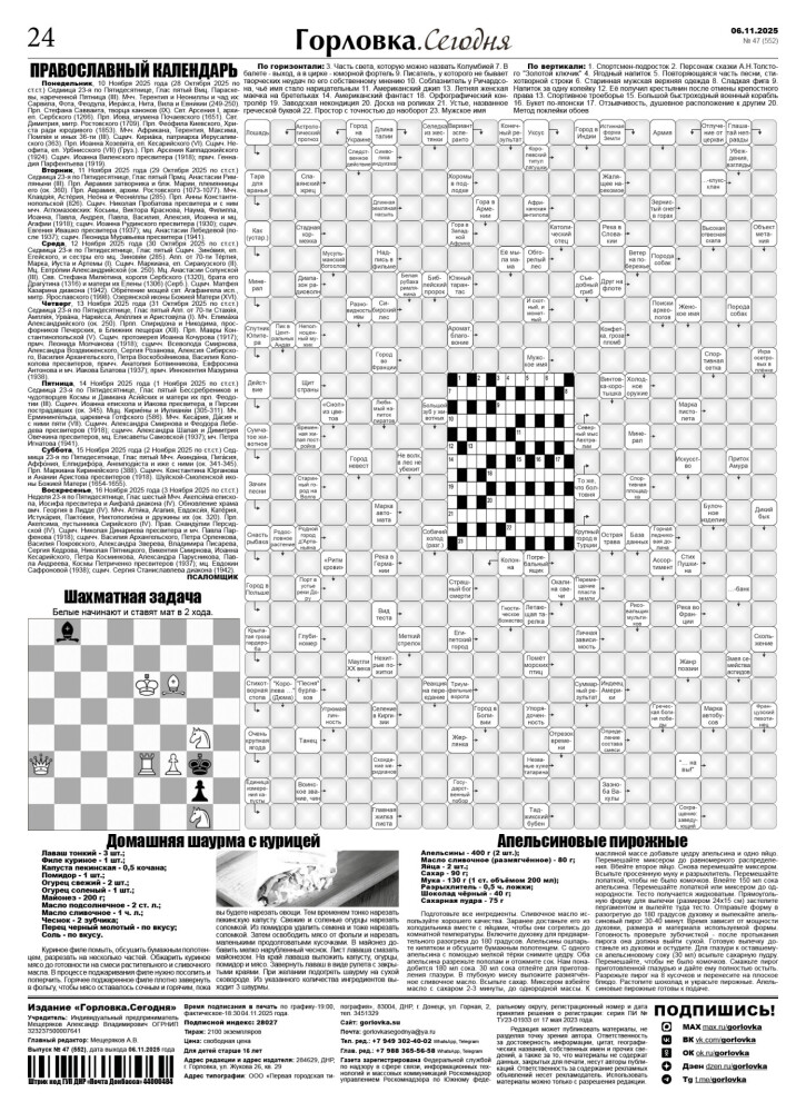 🗞 06 ноября 2025 года, вышел новый выпуск общественно-информационной газеты «Горловка.Сегодня» 🇷🇺 №47 (552). 24 полосы, тираж 2100 экз., газета выходит каждый четверг. 📰 Горловка в MAX https://max.ru/gorlovka