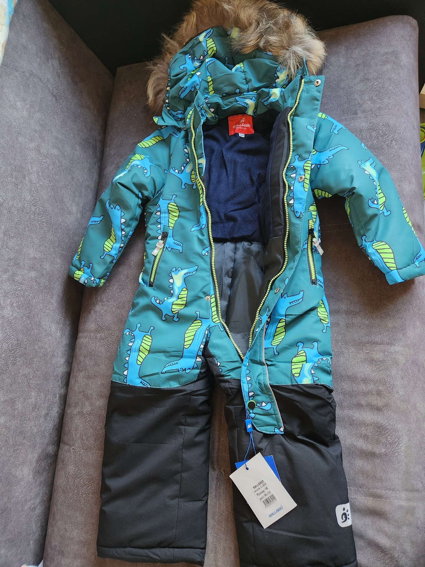 2) Комбинезон зеленый зимний новый (не подошел размер) 98-110 см — 2950 руб.