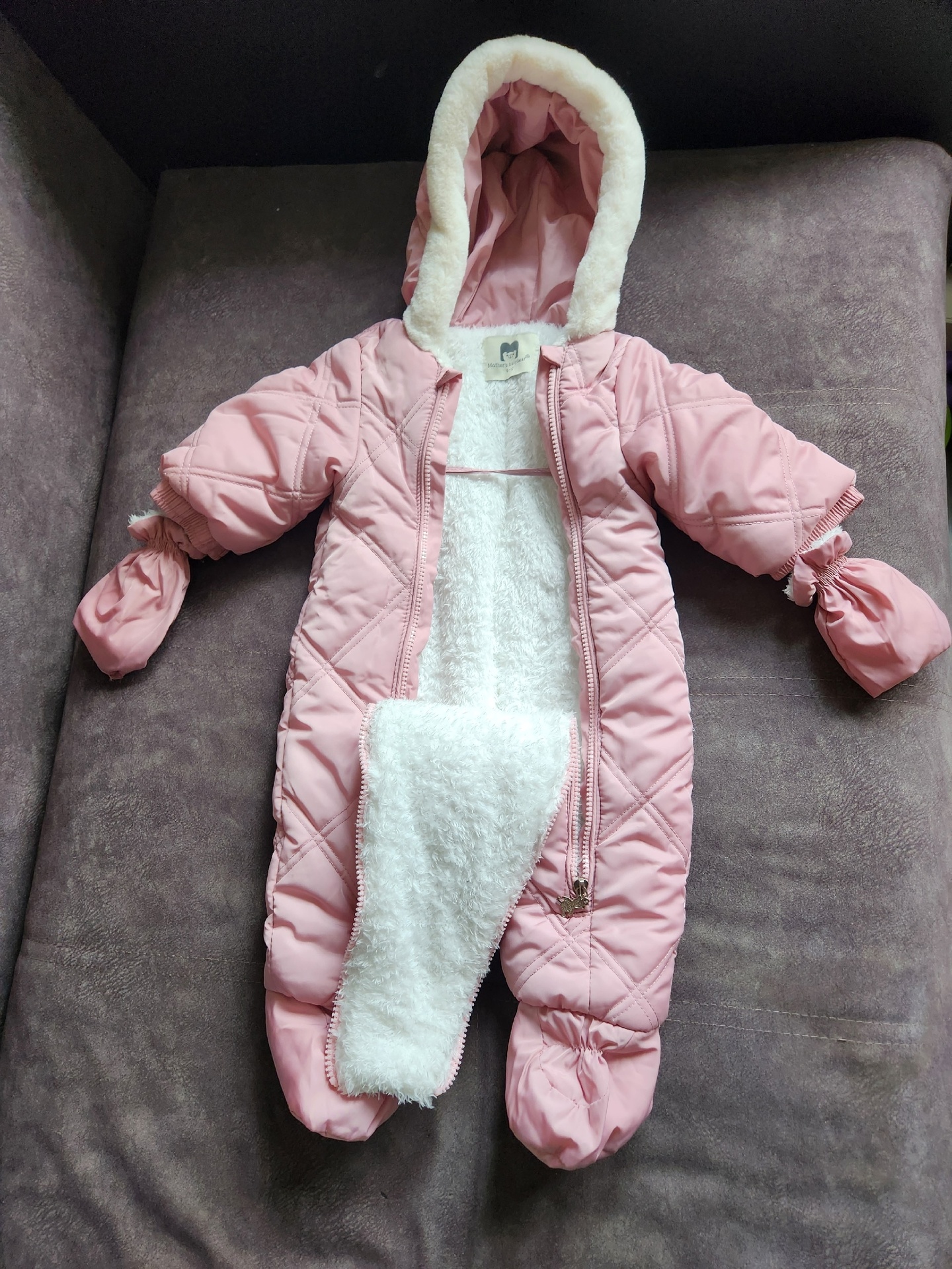 1) Комбинезон розовый утепленный 68-74 см в хорошем состоянии — 1500 руб.