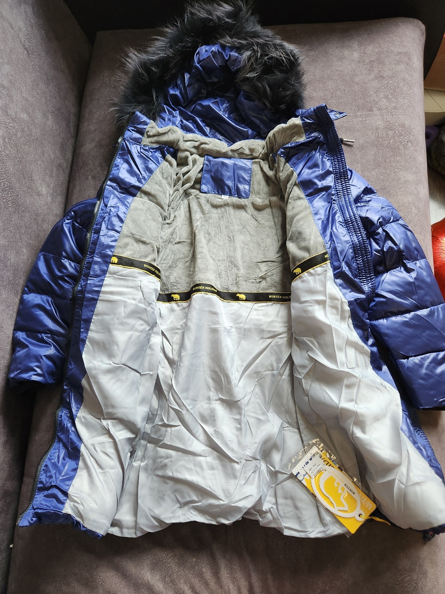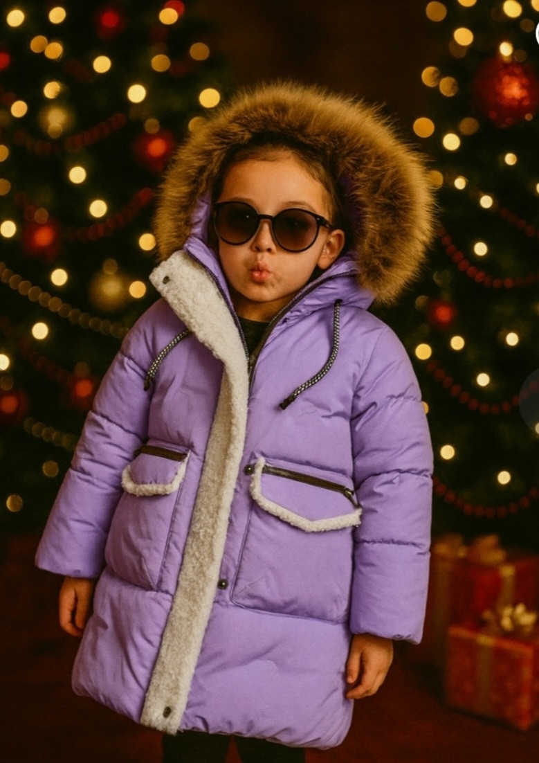 4) Куртка светло-фиолетовая зимняя удлиненная для девочки новая (не подошел размер), на бирке 122 см, подойдет на рост 122-134 см= 2000 руб.
