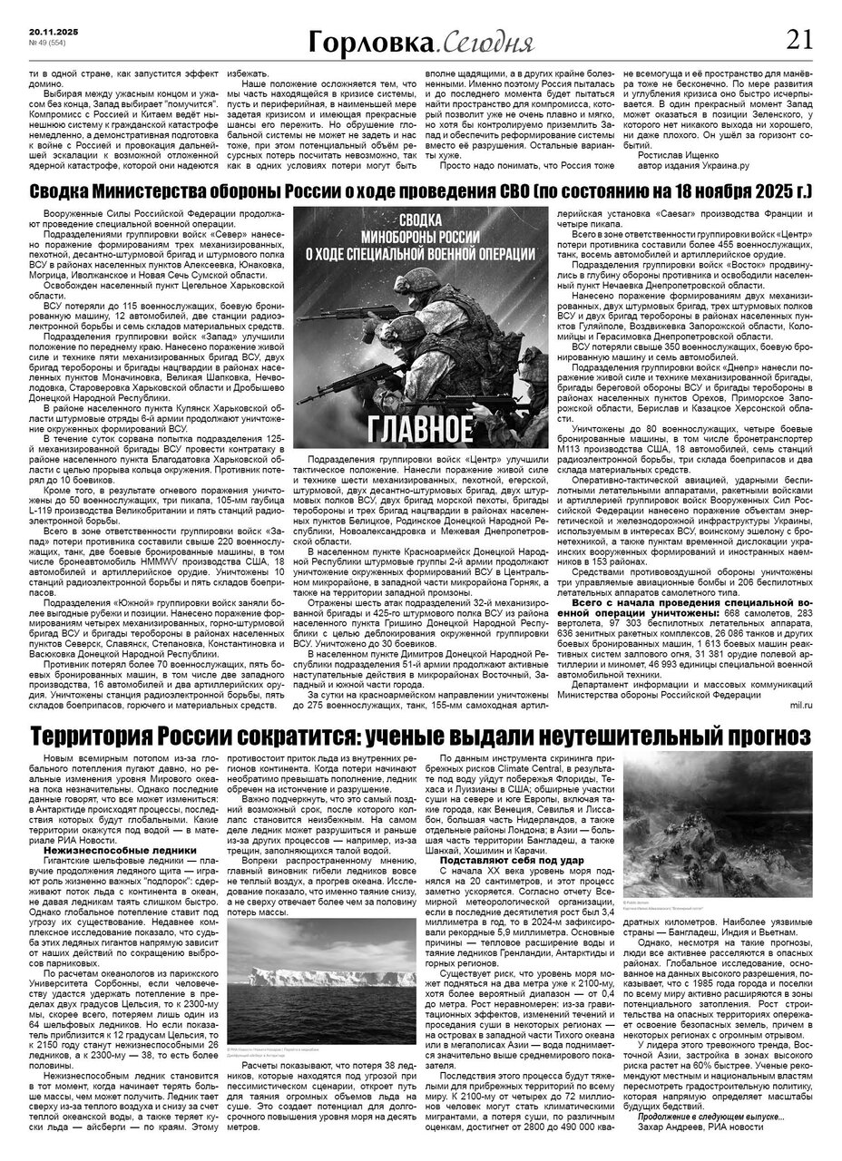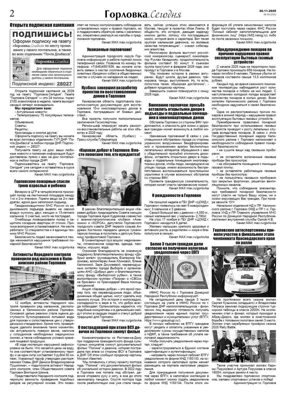 🗞 20 ноября 2025 года, вышел новый выпуск общественно-информационной газеты «Горловка.Сегодня» 🇷🇺 №49 (554). 24 полосы, тираж 2100 экз., газета выходит каждый четверг. 📰 https://gorlovka.su/vypuski/gazeta-gorlovka-segodnya-vypusk-554