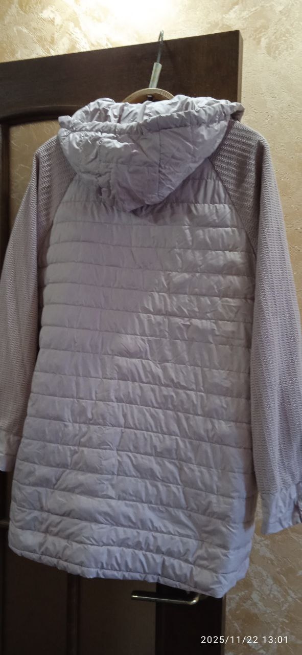 2. Женская куртка, демисезонную. Размер 52-54-56 надо мерять. Производство фабричный Китай. Очень красивый цвет (пыльная роза), на фото цвет искажен, в реальности намного красивее. Капюшон отстёгивается. Длину рукава можно менять за счёт манжета с кнопкой, сбоку молния. Состояние как новое. Цена 900руб.