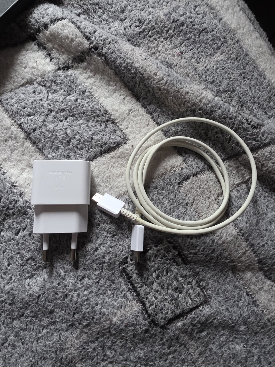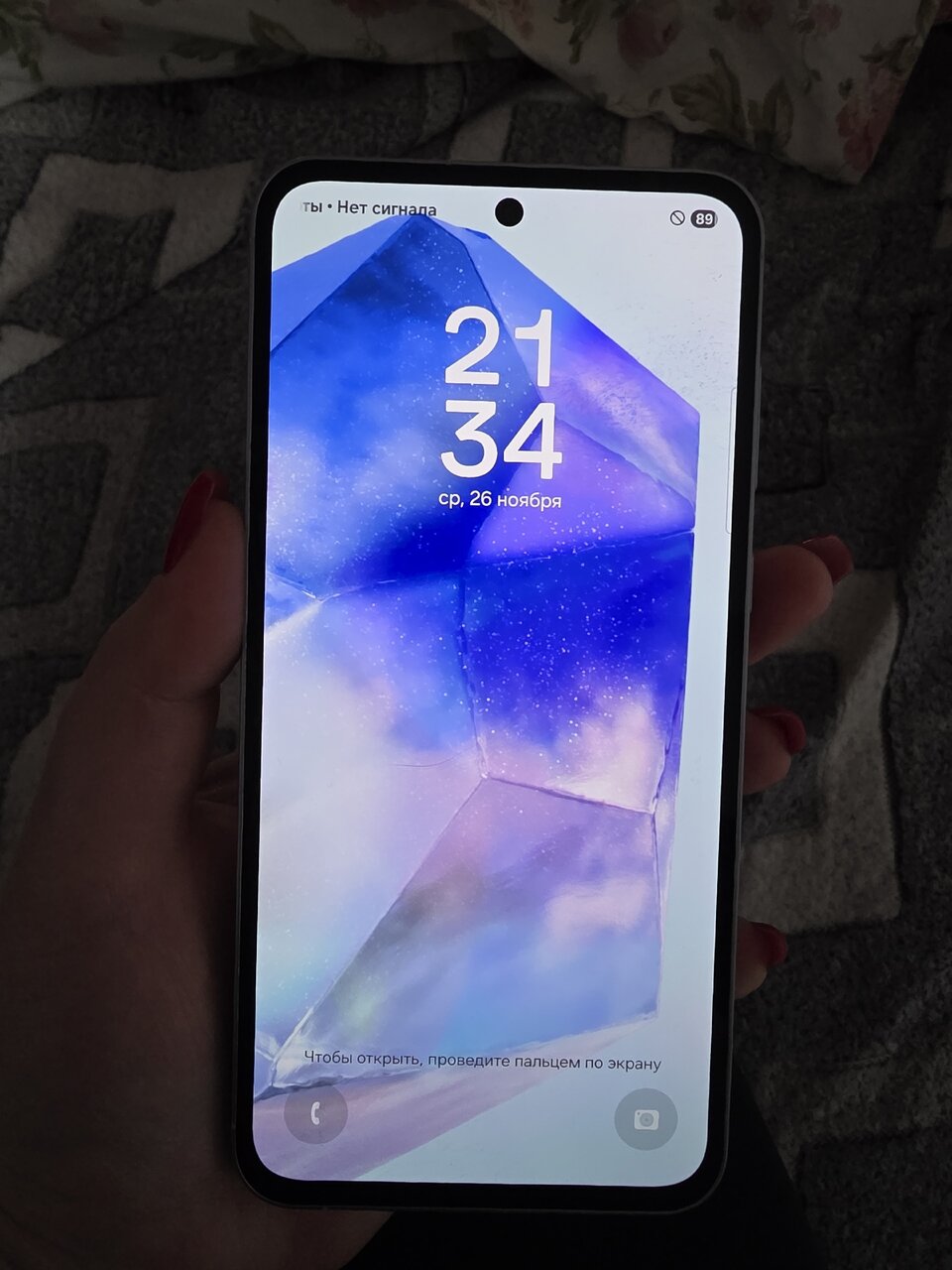 Здравствуйте. Продаю свой Samsung А55. В идеальном состоянии, кроме верхней камеры (видно на фото). На работу никак не влияет, фотографирует отлично. И на шнуре зарядного видны следы постоянного использования .