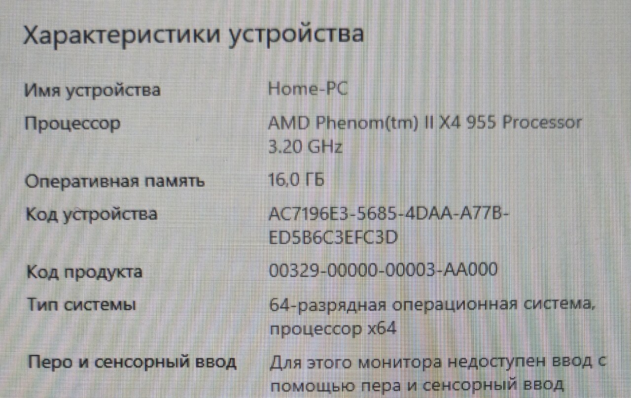 Процессор AMD Phenom(tm) l1 X4 955 Processor 3.20GHz 4ядра 4 потока