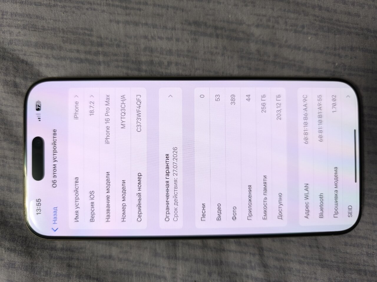 Продаю свой iPhone 16 Pro Мах, с памятью 256 ГБ.