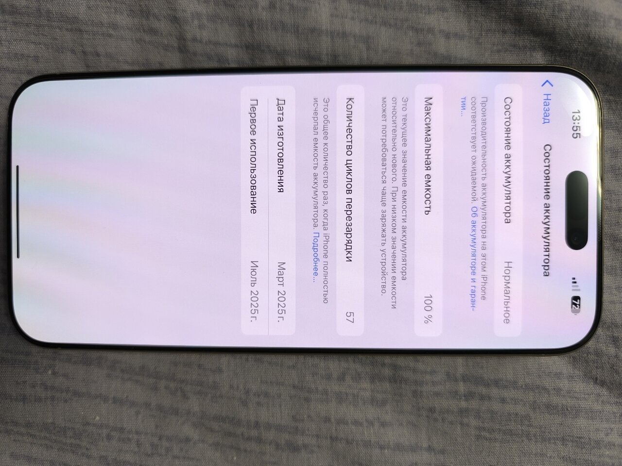 Телефон находится в идеальном состоянии: корпус и экран без дефектов, состояние АКБ — 100%