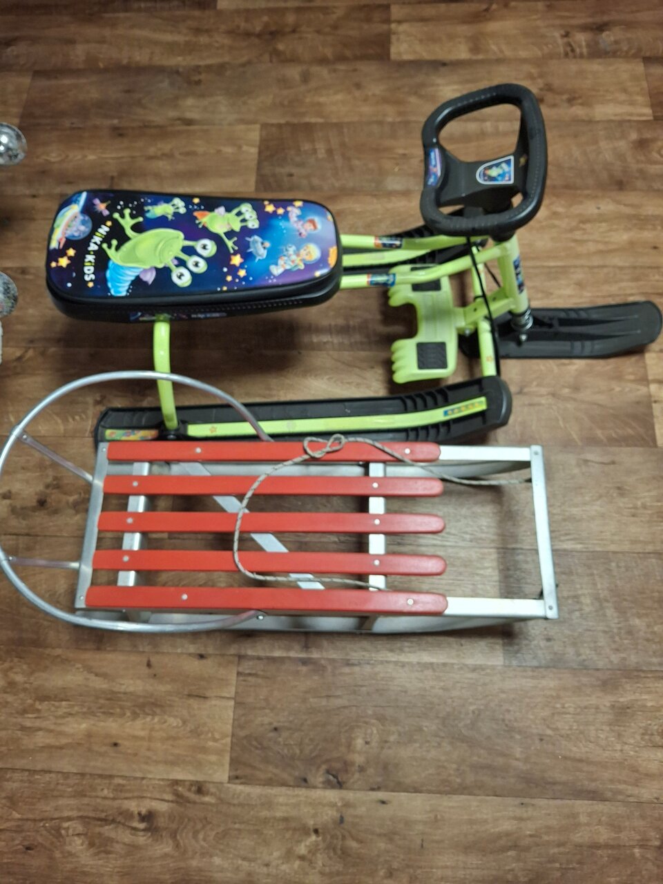 Продам в одни руки. Санки алюминиевые, очень легкие, производство » Дети едут» Питер ( новые на Озоне7500р). Состояние идеальное. Снегокат Ника Спорт с ножным тормозом, до 100кг. ( новый на Озон 3800р. Состояние идеал. За все 5500р.+ 79494237484