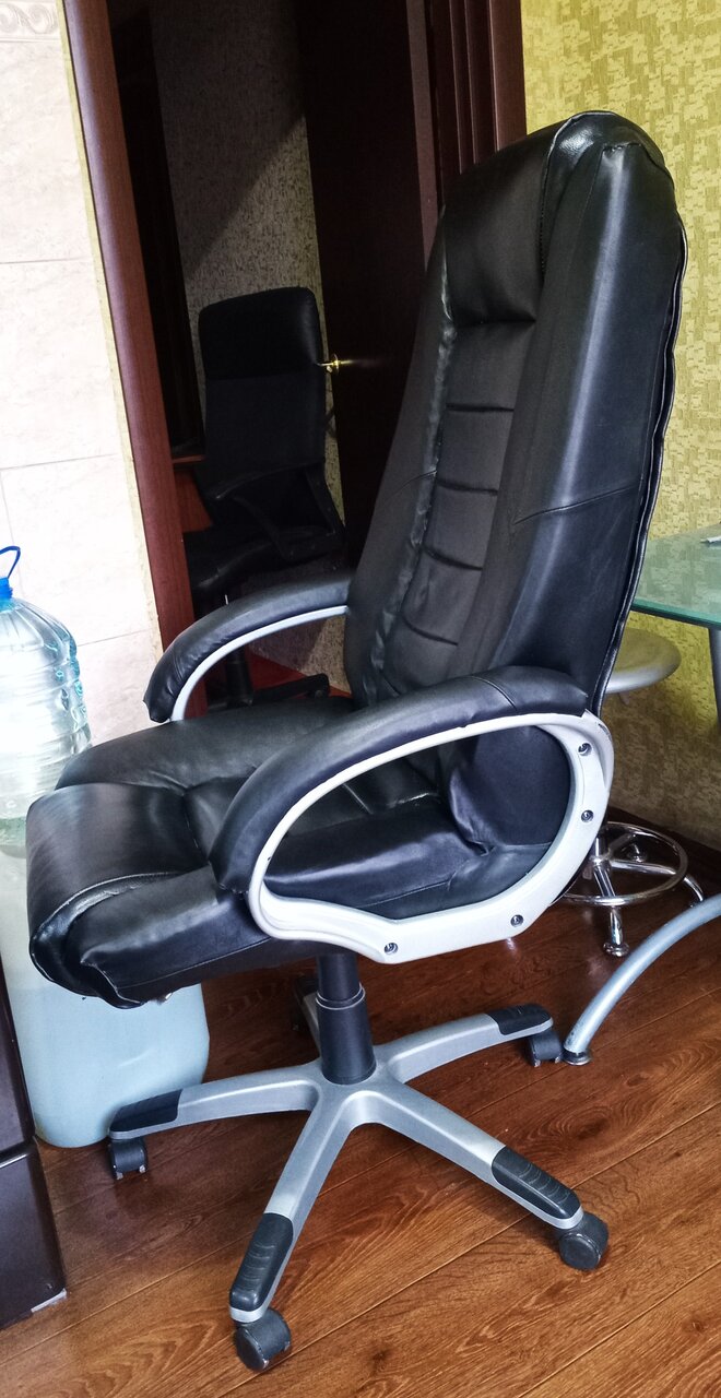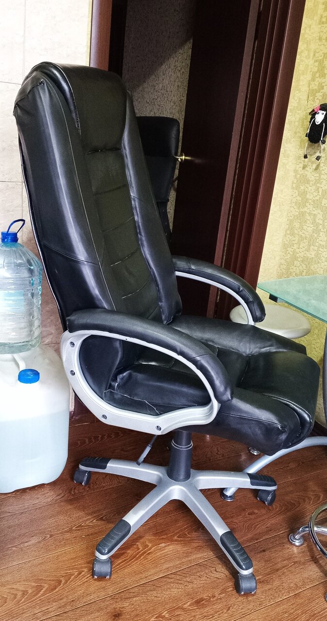 Крупное кресло в хорошем состоянии, все механизмы исправны, мягкие подлокотники, подголовник. наполовину перетянуто нат.кожей высота 130см, ширина- 65см.✅7т.руб.