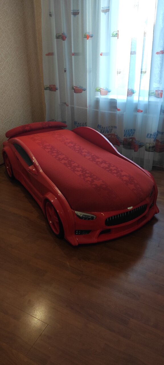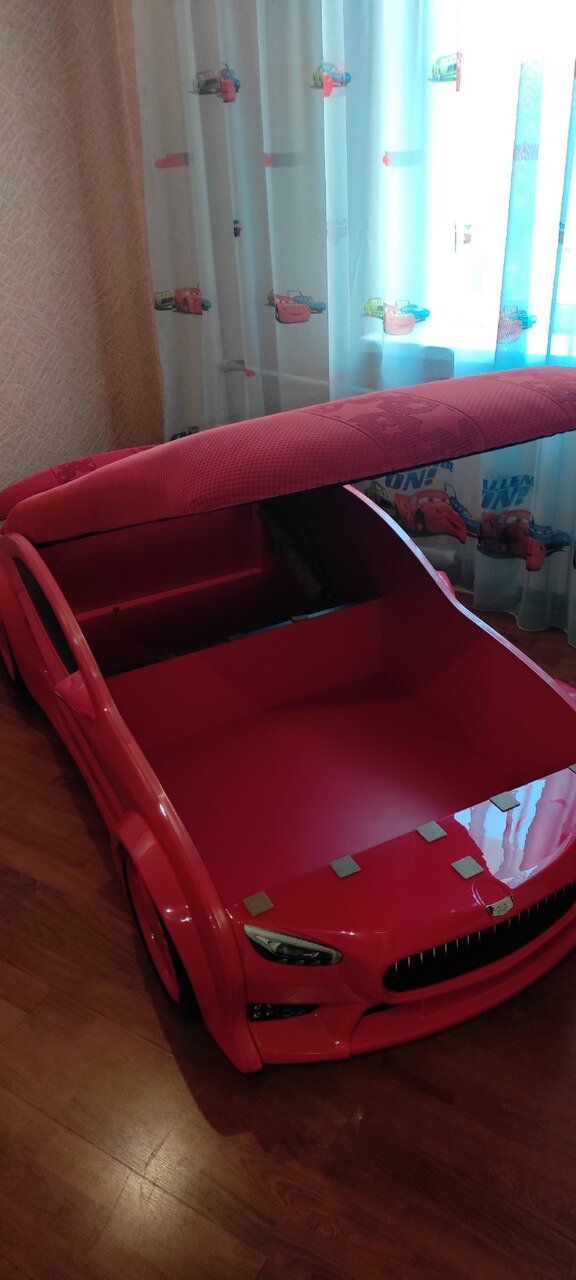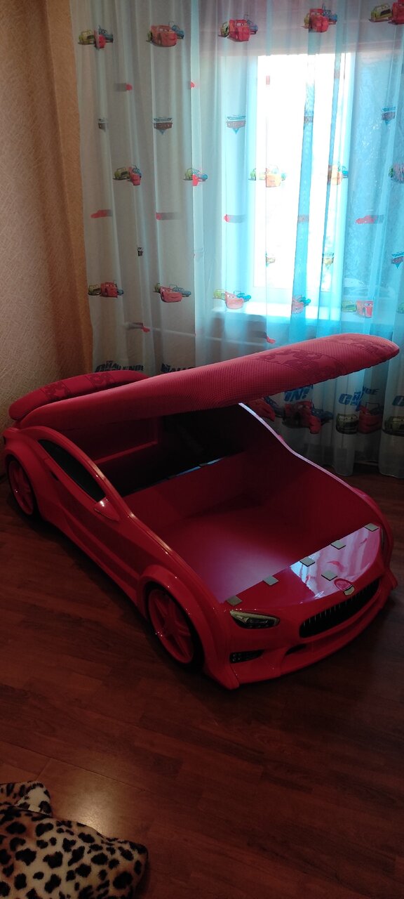 Продам детский диван-кровать. Каркас-пластиковый автомобиль. Спальное место 180×80 диванного типа с большим отсеком для белья, обивка велюр. Спойлер мягкий.Производство Италия. Почти без пробега: в использовании был не более месяца. Разобран, готов к транспортировке. Цена: 18 000 Донецк, Буденновский (Донской), все вопросы по тел. +79484394288