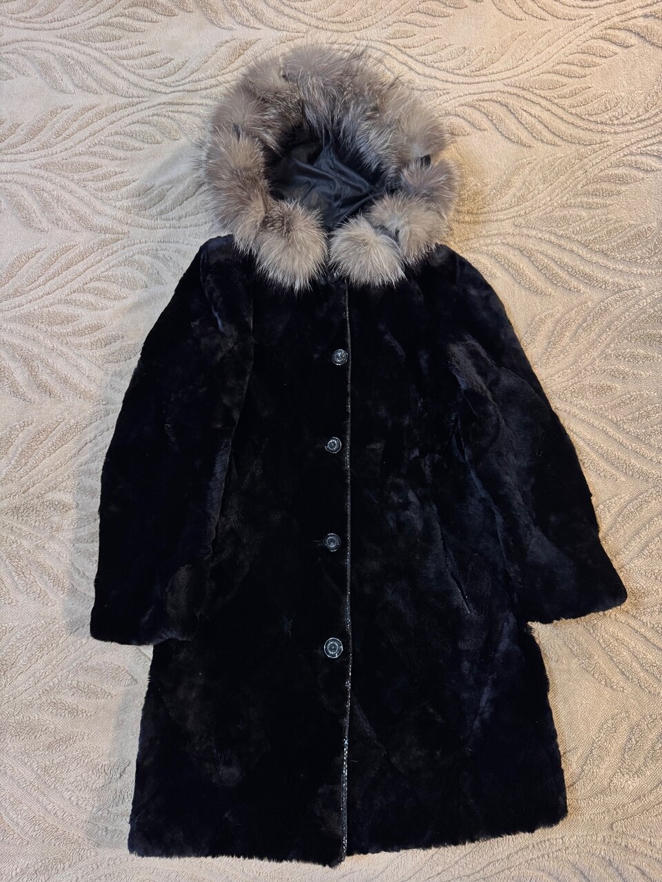 Продам шубу из поперечного мутона с мехом чернобурки , размер 44-46. В хорошем состоянии . 5000 р. г.Макеевка +79493996192