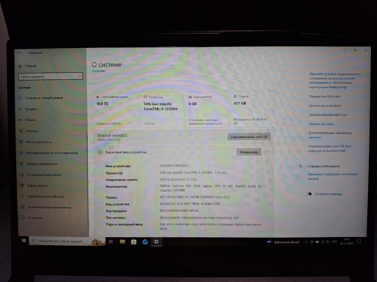 Продам Игрoвoй ноутбук МSI i5-12500Н/ RТX 3060/ 16gb Rаm