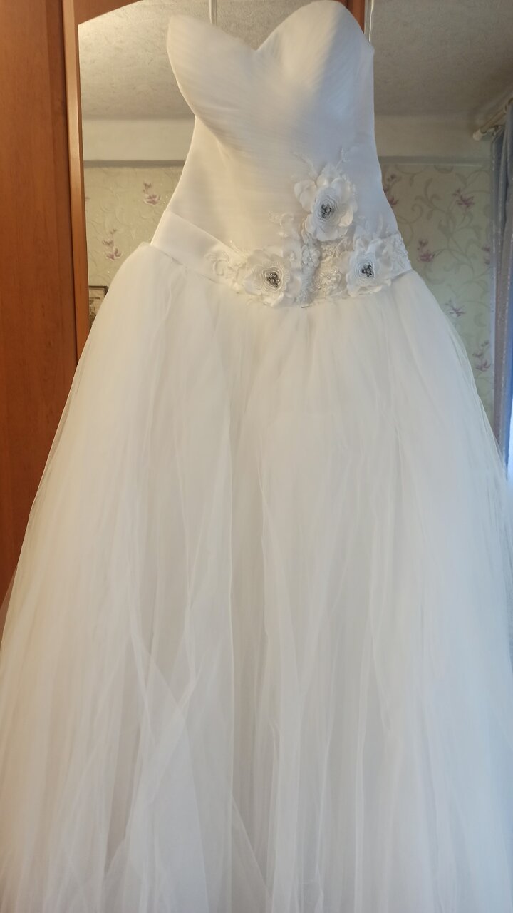 Продам свадебное платье, одевалось один раз, не венчаное, в подарок перчатки, размер 44-48, 5000 рублей,( торг) телефон+79493367530г.Горловка