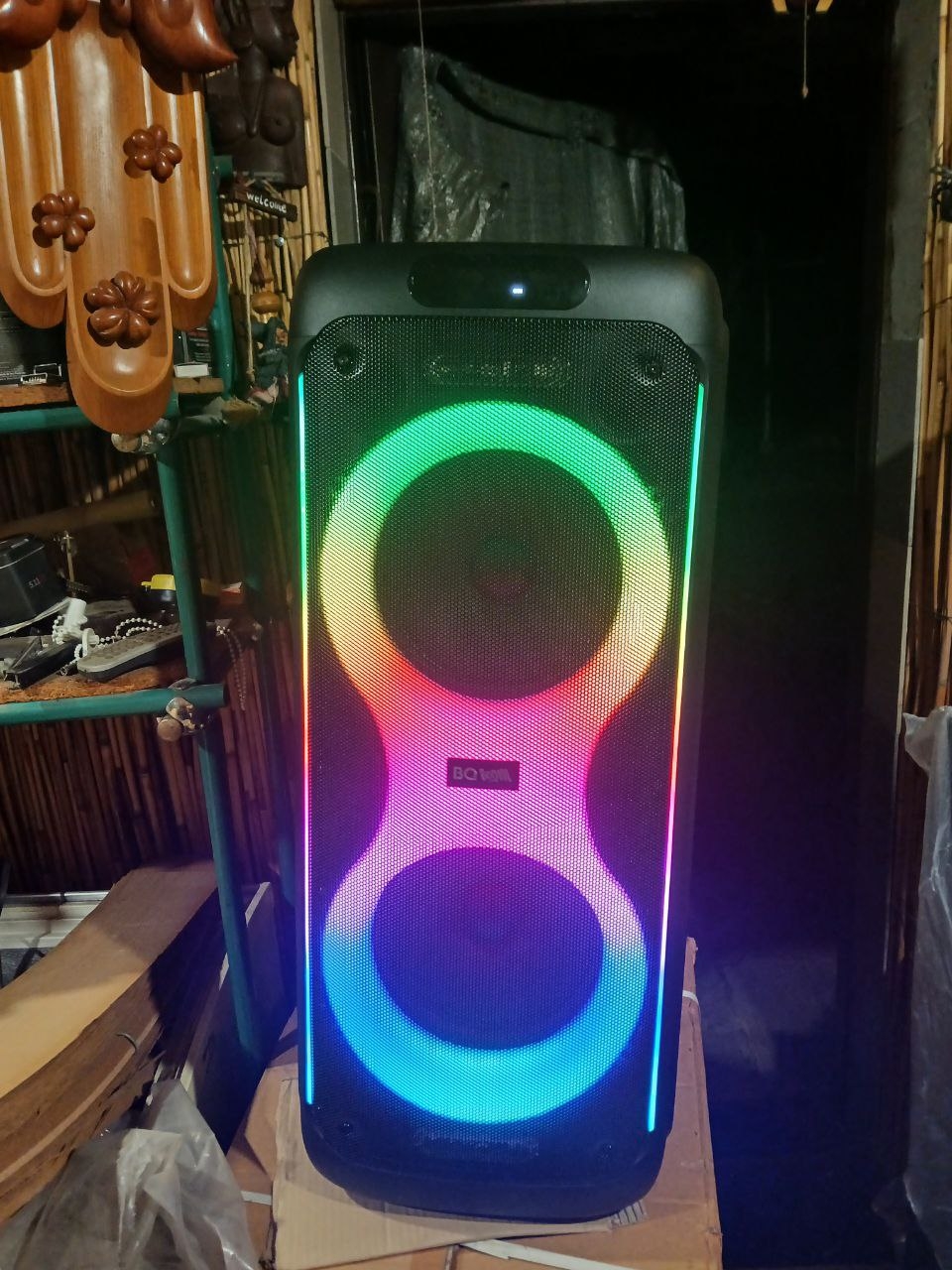BQ PBS3006 — портативная аудиосистема (блютуз колонка) мощностью 100 Вт, с красочной подсветкой, караоке и поддержкой режима TWS. В комплекте имеется беспроводный микрофон и пульт управления. Максимальный размер USB-накопителя 128 ГБ.