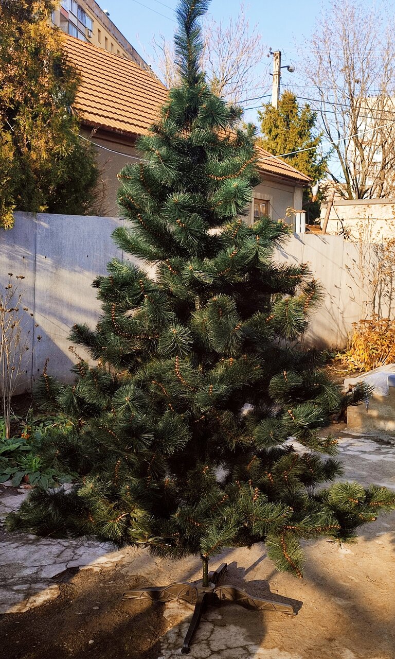 Продам пушистую сосну, 230 см с напылением на кончиках веточек.
