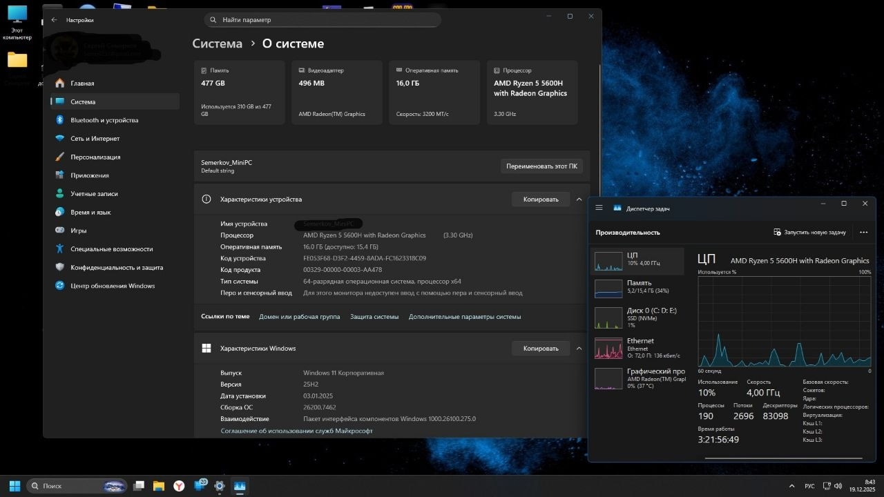 Процессор: 6 ядер. AMD Ryzen 5 5600H (частота 3300 МГц до 4400 МГц.);