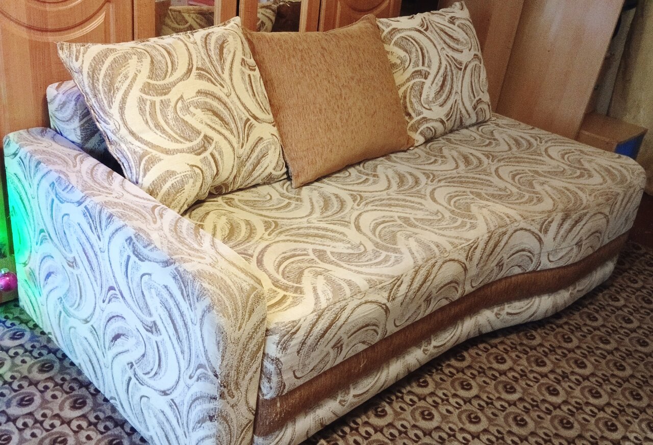 Диван бежевый, размер 2.05м×1.05м. Раскладывается до 2.05м×2.10м — 10000₽