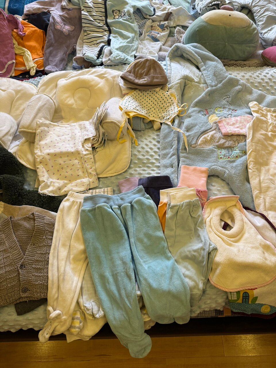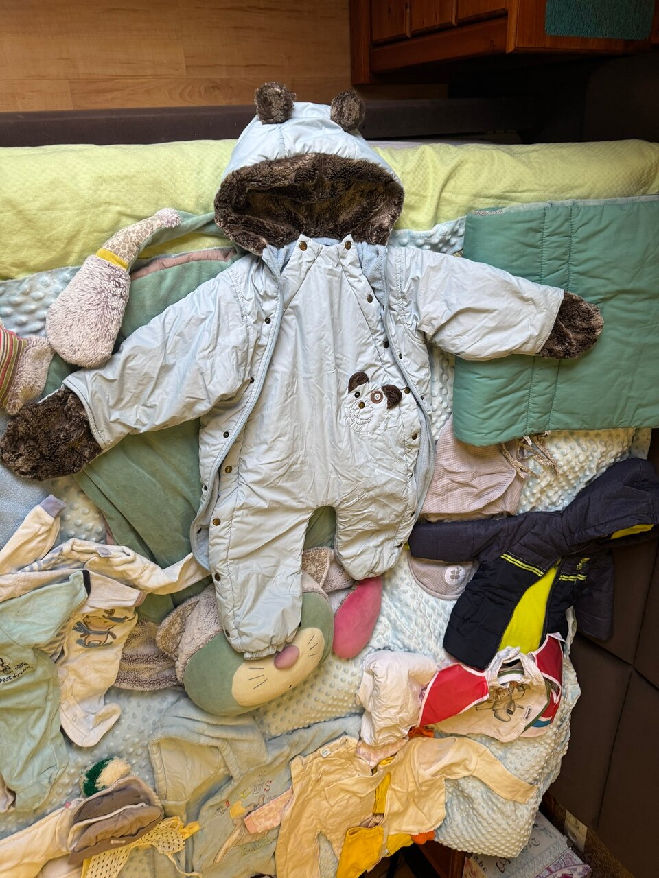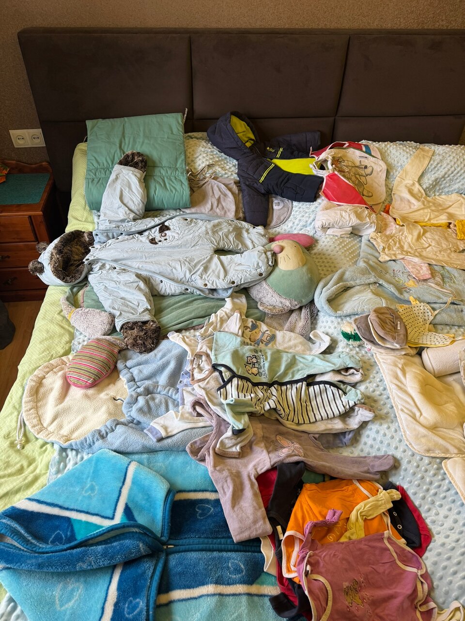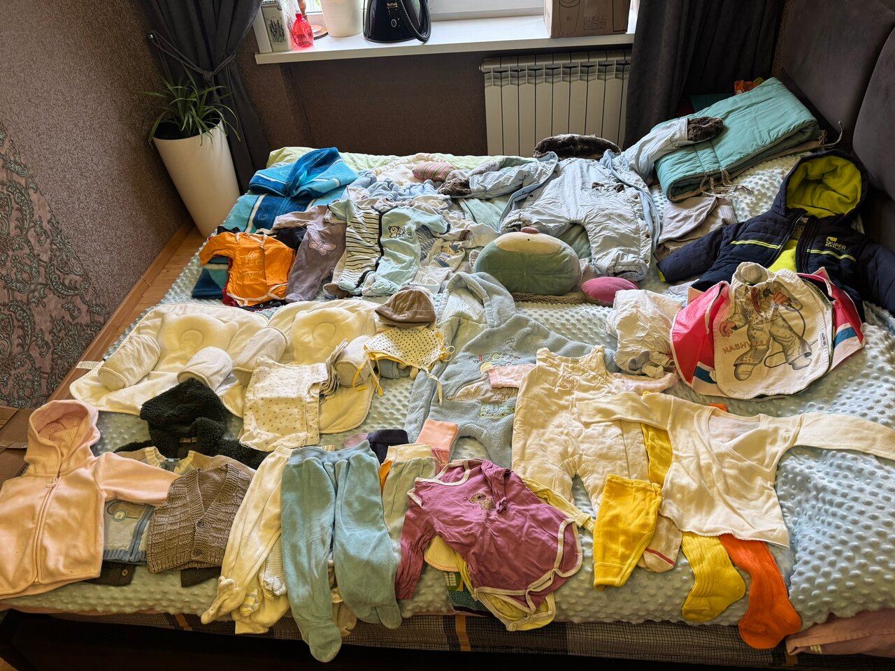 Продам все что на фото за 1000 рублей. Человечки летние и зимние . Ползунки , Бодики, штаны, кофты , пайты , слюнявчики , куртка , комбинезон зимний. Коврик , ободок на манеж, простынь в манеж, шапочки , конверты — одеяла, носки , колготы ….. Донецк . Крытый рынок. +79494192237