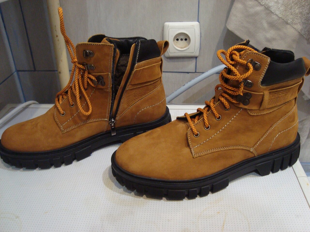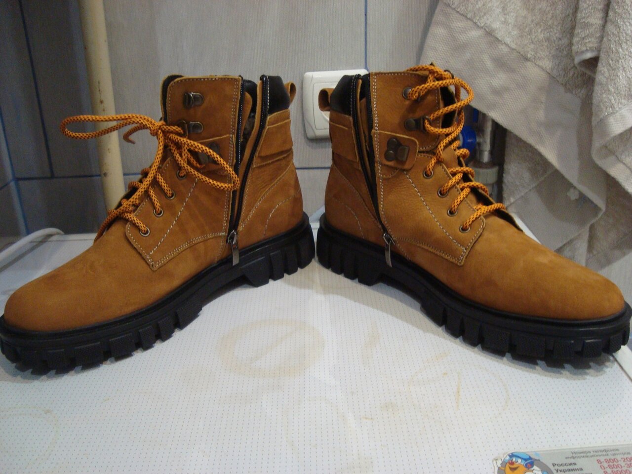 Продам новые зимние кожаные ботинки мужские. Материал натуральный нубук, внутри – натуральная шерсть. Размер на коробке указан 41, но у меня нога 42-43 размер, и они мне как раз. Покупались весной по акции, потому цена такая дешевая. Я их не носил ни разу, только один раз померил. Причина продажи: мне их купили как подарок, но они мне не нужны. Просто неудобно было отказать. Цена 5000 руб, отдаю дешевле на 1000, чем купил. Это хорошая цена для таких натуральных ботинок. Тел: +79493916458, Александр, Донецк.