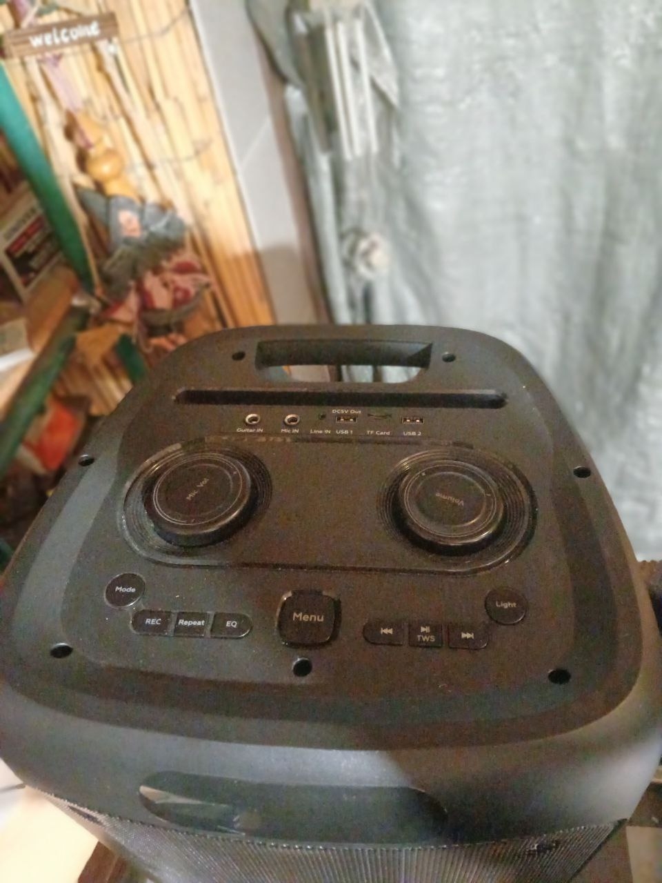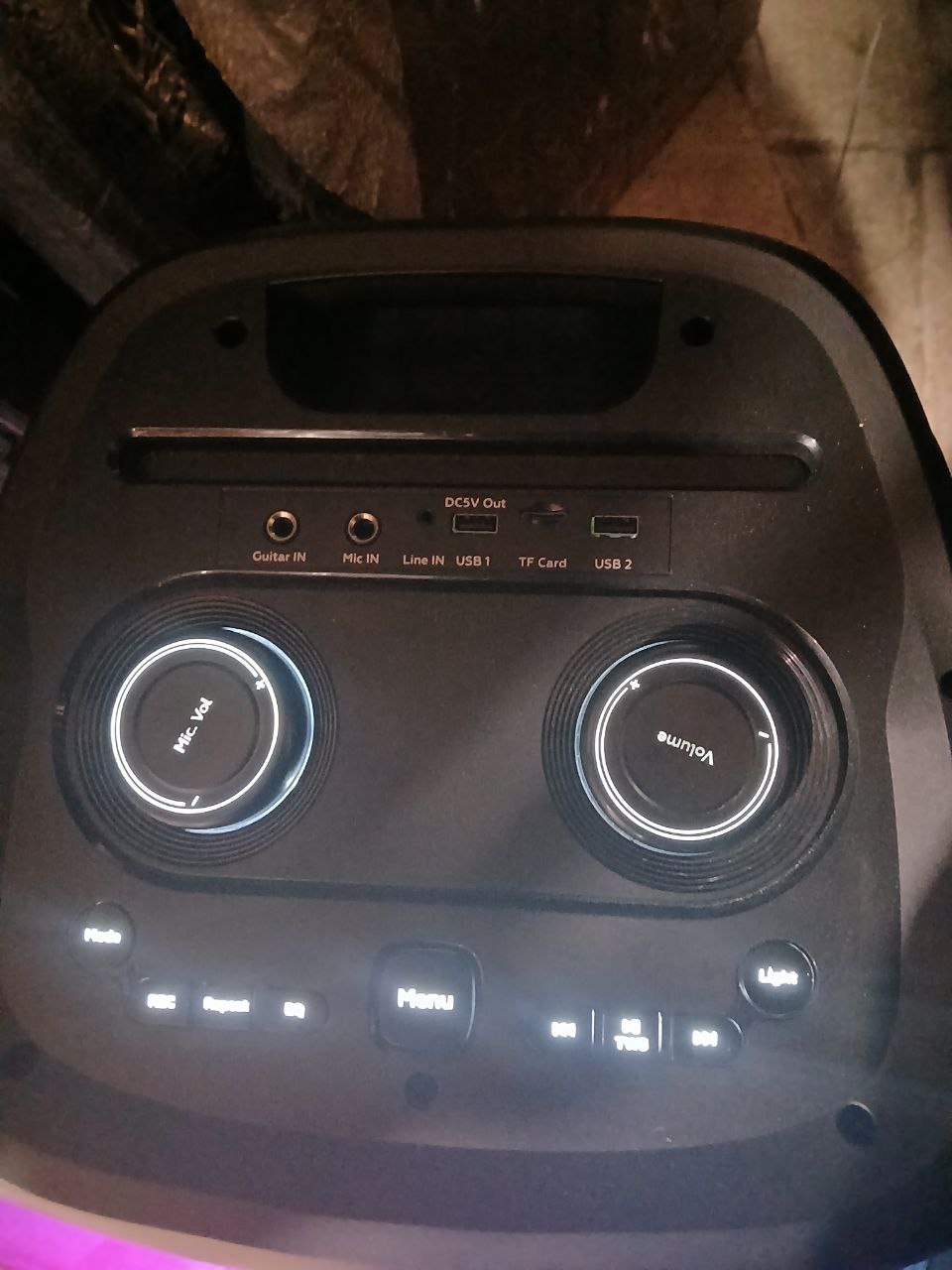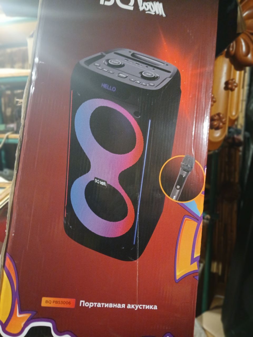В комплекте: шнур для зарядки, беспроводной микрофон, пульт ДУ, руководство по эксплуатации. Рыночная цена колонки 23 тыс. руб. Продаю за 15,5тыс. руб.