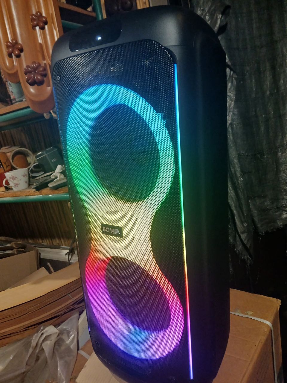 Сделайте себе праздник на новогодние каникулы. Музыка, караоке, цветомузыка для Вас с колонкой BQ PBS3006 — портативная аудиосистема (блютуз колонка) мощностью 100 Вт, с красочной подсветкой, караоке и поддержкой режима TWS. В комплекте имеется беспроводный микрофон и пульт управления. Максимальный размер USB-накопителя 128 ГБ.