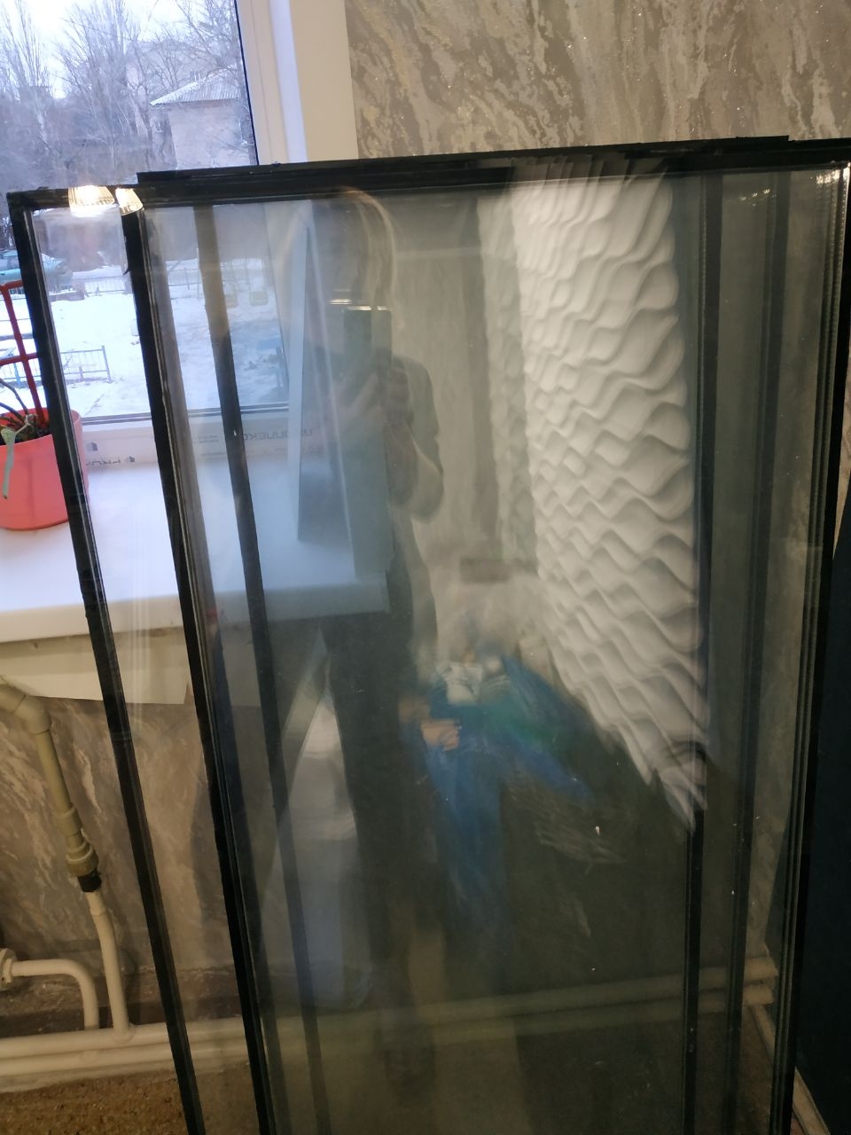 Стеклопакет — Ш. 55см, Д. 128см. Толщина 3.5 см. (1000 руб. за шт)