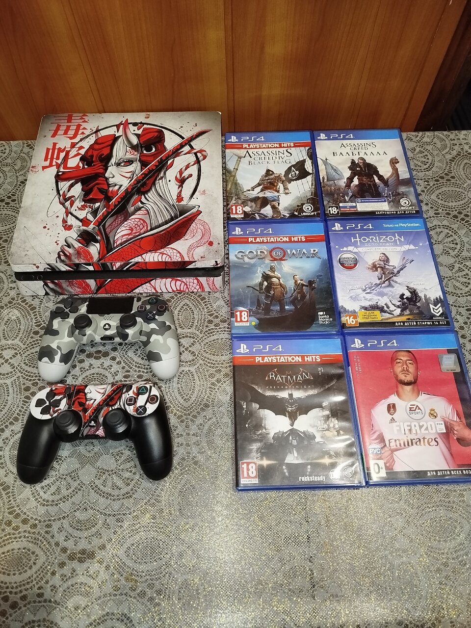 Продам ps4 slim. Состояние отличное. В комплекте 2 джойстика, 6 дисков. Цена 24000 рублей; Продам прошитую ps4 в отличном состоянии. Уже установлены игры. В комплекте 2 джойстика, подставка для приставки. Цена 26000 рублей; Продам ps5 slim. Состояние новой. Покупалась в октябре 25-го года. В комплекте 2 джойстика, подставка с функцией охлаждения и зарядки джойстиков, 2 диска. Оформлена подписка делюкс до октября 26-го года. На аккаунте куплены такие игры: Ghost of yotei, stalker 2, GTA 5, snow runner, Mafia, RDR 2, Battlefield 6 и ещё несколько игр. Цена 55000 рублей. Город Енакиево. Тел.+79493571646. Возможна доставка по городам ДНР, ЛНР.