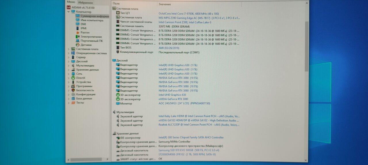 Видеокарта — GIGABYTE GeForce RTX 3080 GAMING OC (LHR) 10GB 320bit GDDR6X, 3-кулерная, металлический Backplate, холодная в стресс тесте FurMark температура достигает максимум 67″, отлично тянет игры с высоким FPS.