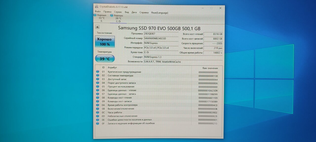 SSD M.2 — Samsung 970 EVO Plus 500GB, для максимально быстрой работы компьютера и запуска игр.
