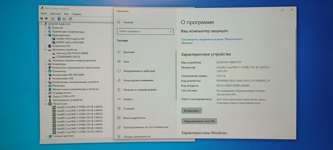Процессор — Intel Core i7-9700K 3.6GHz Максимальная частота в турбо режиме 4.9MHz, 8 Ядер, «K» – разблокированный множитель, то есть процессор можно разогнать, Мощный.
