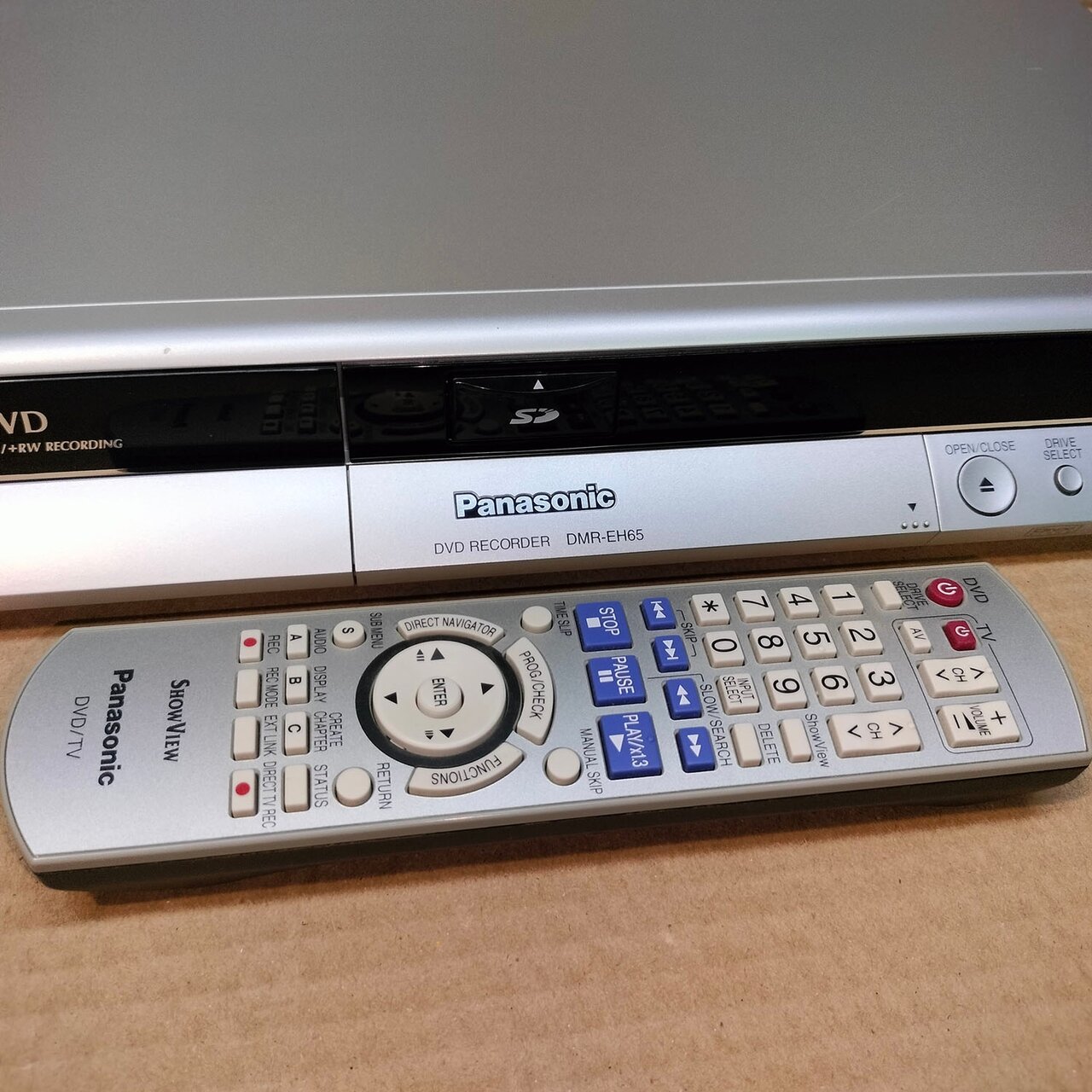 DVD рекордер Panasonic DMR-EH65 в отличном состоянии. Оригинальный пульт в наличии. Пишет на встроенный жесткий диск 250 ГБ и на диски форматов DVD-R, DVD+R, DVD-RW, DVD+RW, DVD+R DL, DVD-RAM. Читает диски в формате DVD-Audio, CD-Audio, MP3 и др., встроенный кардридер. Имеет мощный встроенный ТВС, идеально подходит для оцифровки аналоговых записей.