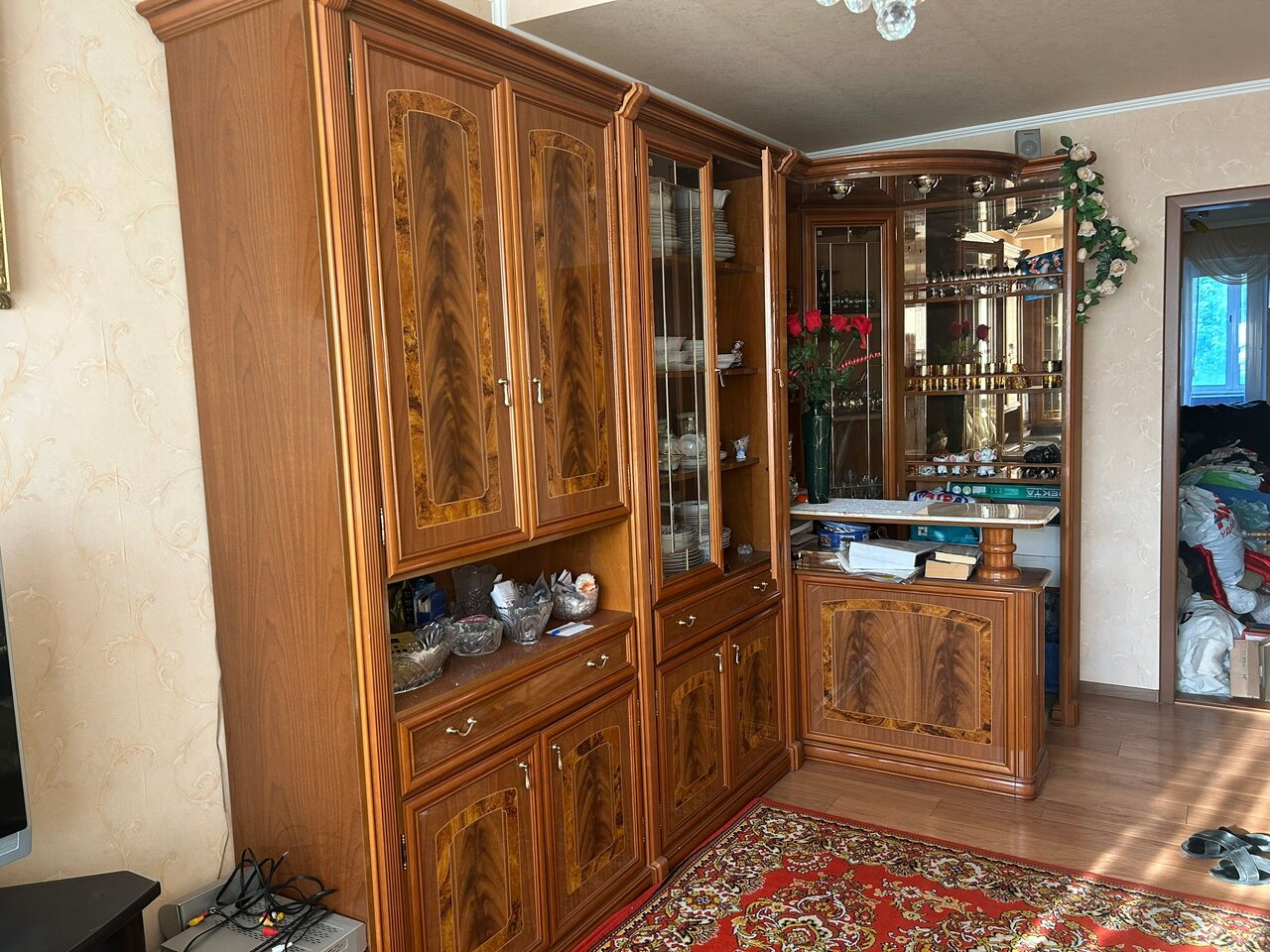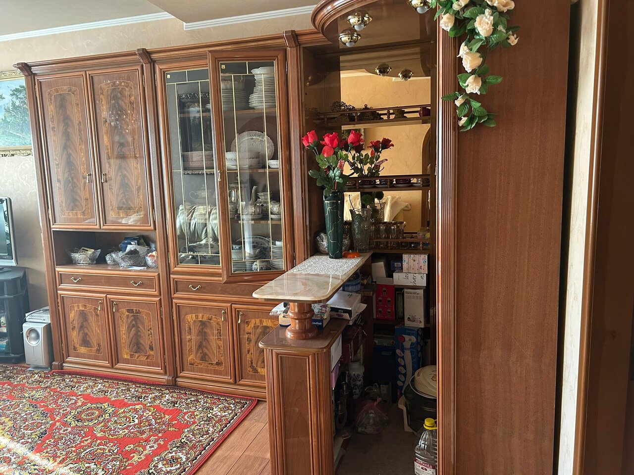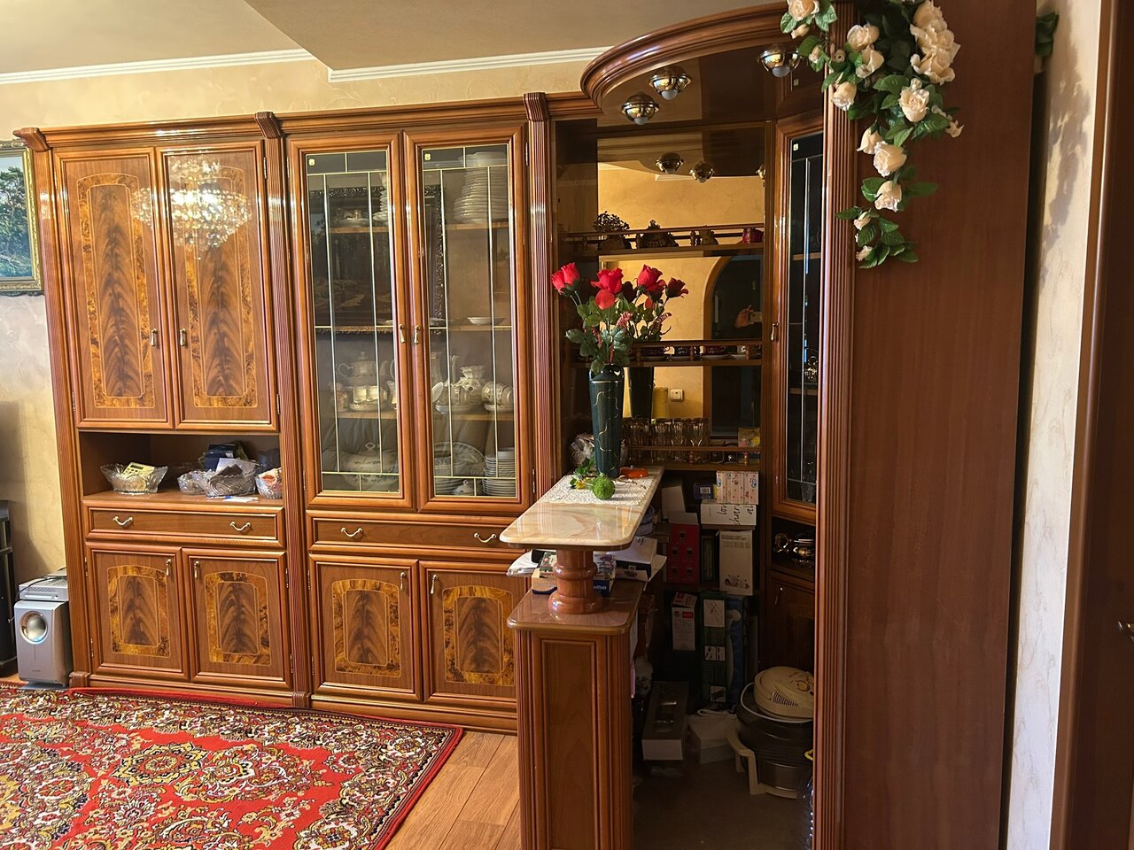 Мебель стенка с баром для зала, кабинета, Италия. Шкафы для посуды, книг, бара, столешница из камня, в баре верхняя подсветка, выделенный пол, стол раздвижной и 4 стула с мягкой обивкой (можно отдельно 80000₽). Цена за комплект 350000₽. Донецк. Галактика. +79493859357 Сергей. В комментариях не нуждаюсь.