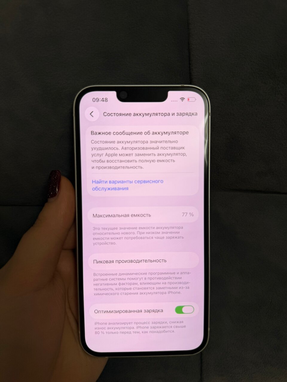 АКБ 77%, родной. Заряд держит целый день при умеренном пользовании