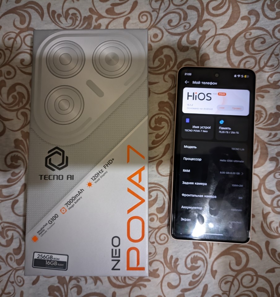 Продам Tecno Pova 7 Neo, 8/256. Состояние нового, практически не использовался. Полный комплект, коробка, зарядка, чехол. Любые проверки. Смартфон на гарантии, есть чек. Цена: 15.000 рублей.