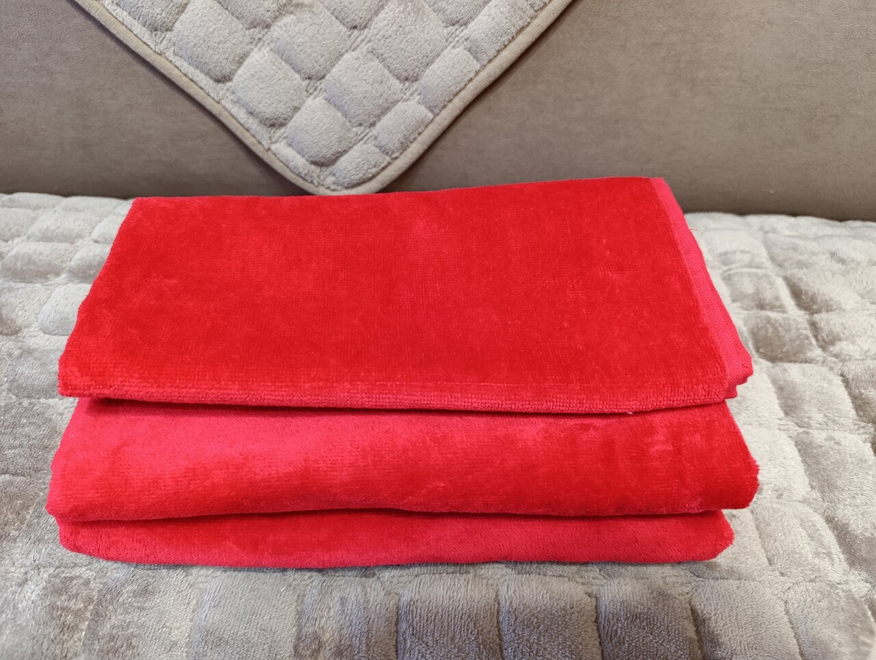 Полотенца 3 шт. красного цвета, размер 120×60 ( 2 шт.), 60×40 (1 шт.), цена 💸 500 руб.
