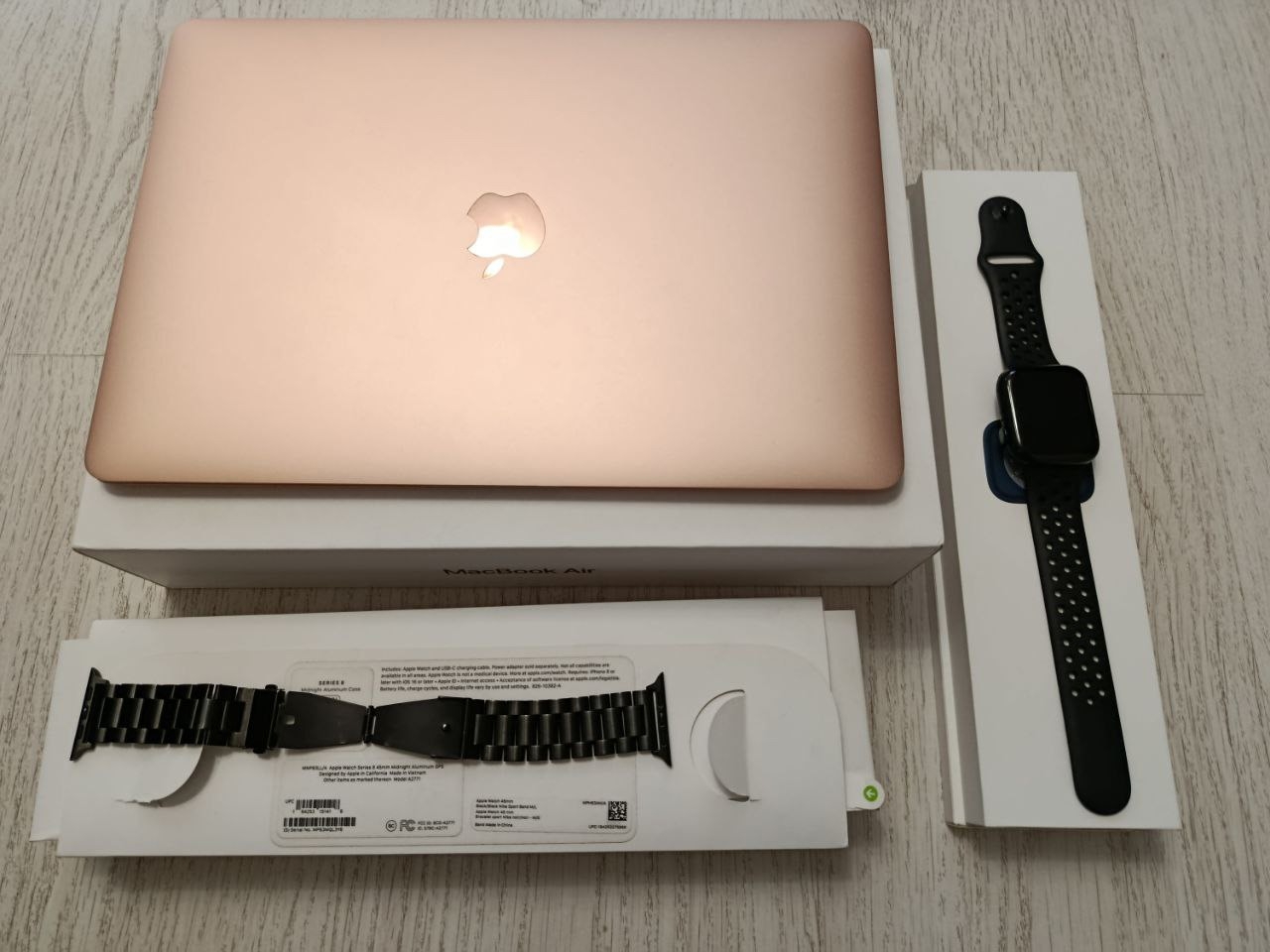 Apple MacBook Air 13. Retina 2019 Core i5 8/128 gb. Состояние нового, без сколов и царапин, весь в оригинале, без ремонтов, полный комплект, цена 29950р, без торгов и обменов. Apple watch 8/45 Nike в отличном состоянии, два ремешка, полный комплект, цена 20000р, если всё вместе — сделаю скидку. Донецк, 79497071094.