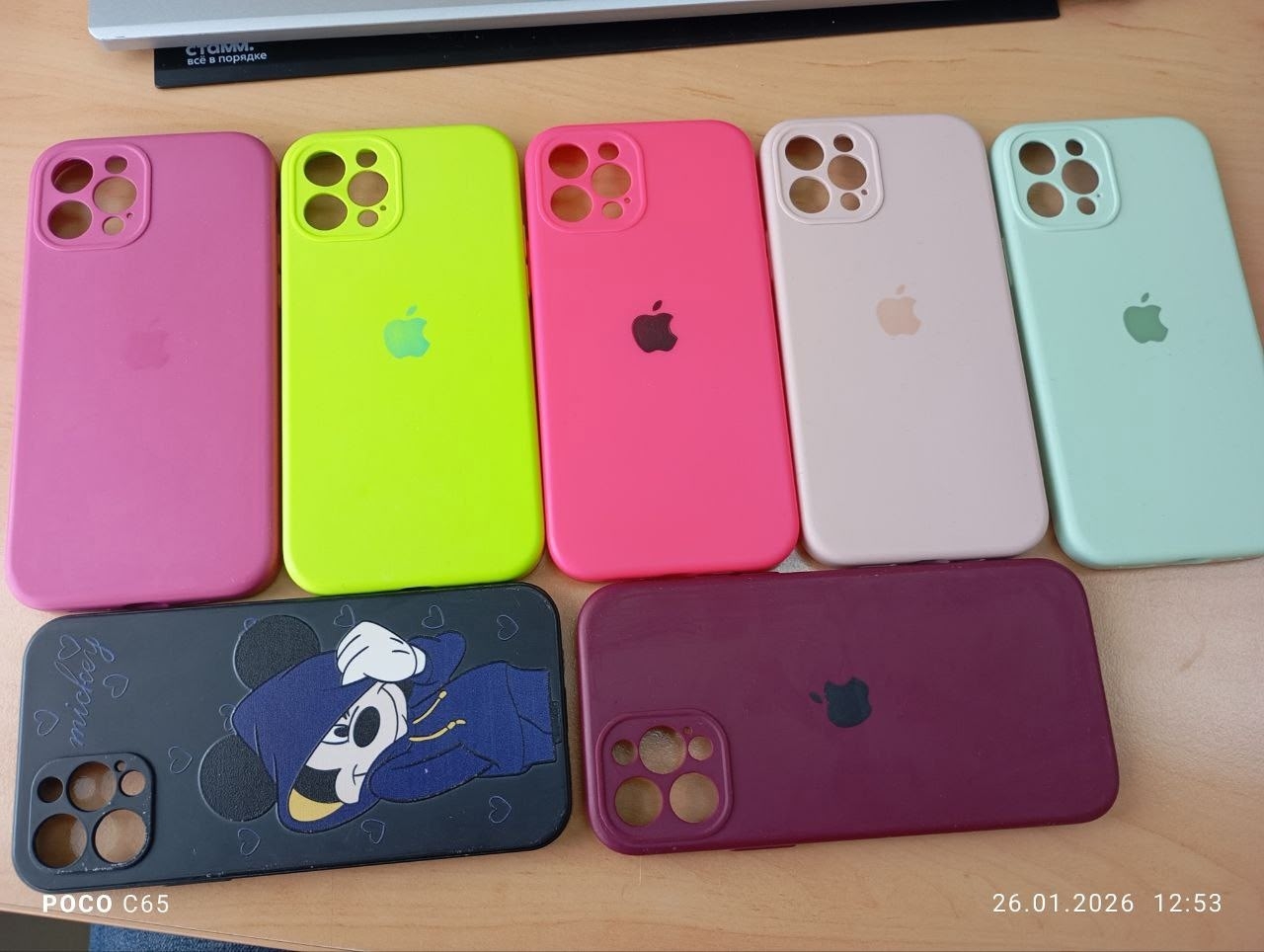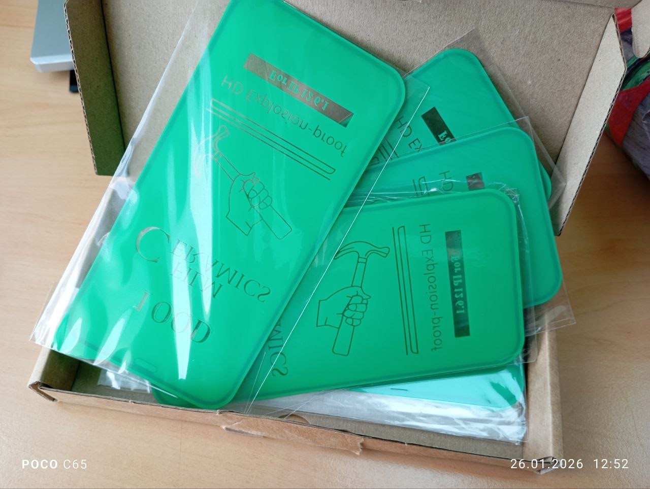 В комплекте зарядка, несколько защитных стекл, и куча чехлов