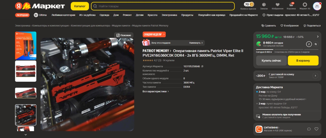 Продам оперативную память DDR4 16Гб Patriot Viper Elite ll 16ГБ (2×8гб)