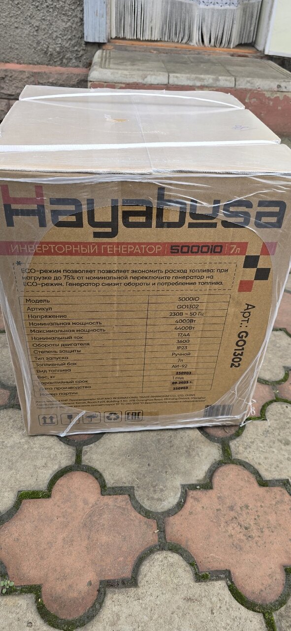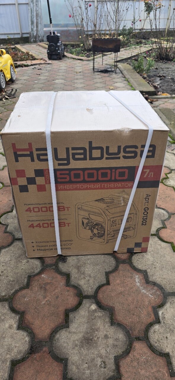 Продам абсолютно новый инверторный генератор Hayabusa 5000io мощностью 4,4 кВт. Обмотка медная. Вес 25 кг. Очень компактный. Цена 28000 рублей. Могу помочь с доставкой. +79495183561