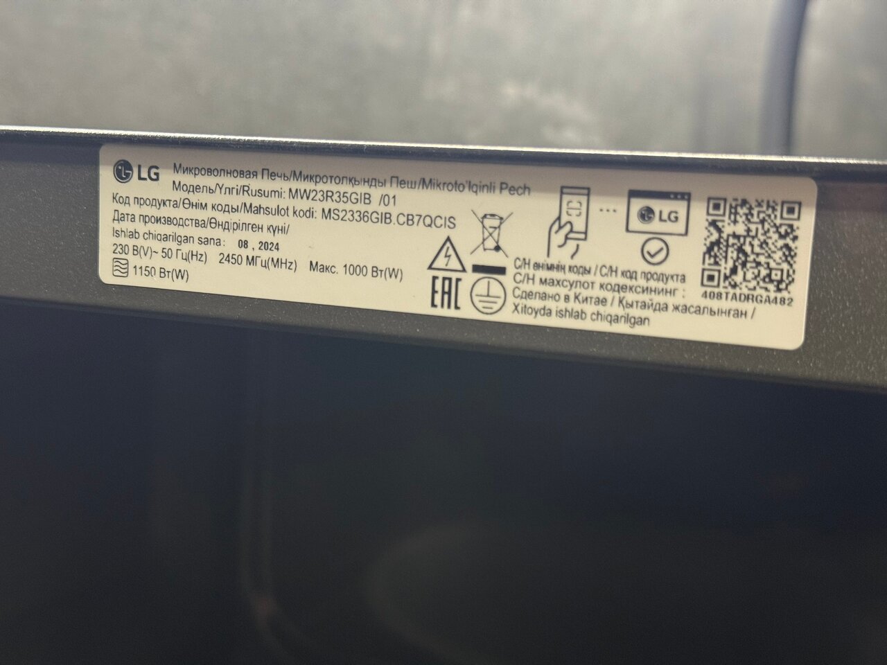 Продам микроволновку LG 28.02.2026 от Администратор Продам микроволновку LG MW23R35GIB Объем 23л, ш/г/в: 47.6/34.6/27.2 7000р +79493690701 + тг